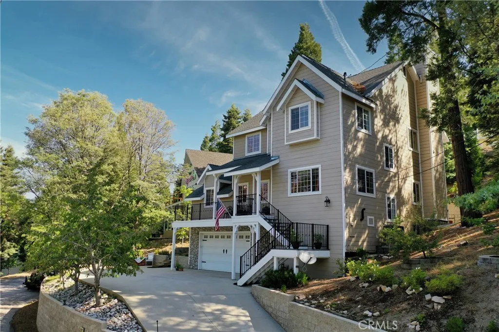 Experience elevated mountain living in this exquisite Lake Arrowhead home, offering full lake rights and unmatched attention to detail. Featuring 4 spacious bedrooms and 3.5 luxurious baths, this meticulously maintained home blends timeless design with upscale comfort. The grand entry welcomes you with 5/8 White Maple hardwood floors and abundant natural light. The gourmet kitchen showcases custom cherry wood cabinetry, stainless steel appliances, a built-in espresso maker, wine fridge, warming shelf, and walk-in pantry great for entertaining. Adjacent are a formal dining room, separate office, sitting room, and a generously sized guest en-suite with full bath. The stunning living room is anchored by a stone gas fireplace with etched arrowhead detail, soaring ceilings, and expansive custom windows that capture serene forest views along with out door patio for entertaining. Upstairs, the primary suite is a true retreat featuring a gas fireplace, oversized walk-in closet, and a spa-style en-suite with clawfoot tub and separate shower. Two additional bedrooms, a full bath, attic fans, and a full laundry room complete the upper level. The lower level features a temperature-controlled wine cellar multiple storage/bonus areas, and an oversized two-car deep garage with its own dedicated heat source idyllic for year-round use. Home is also plumbed and ready to go for a home generator. Step outside to a beautifully designed patio with built-in gas fire pit and hookups ready for a spa or Jacuzzi. A newer 50-gallon water heater and pride of ownership throughout complete this rare of