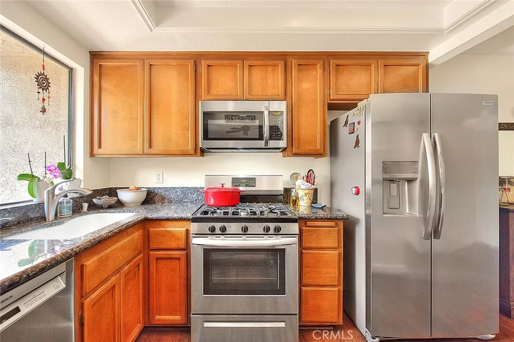 Welcome to one of Upland's Best Values! Turnkey Two-Bedroom Condo in Gated Upland Vistas Community Enter 1531 Corte Caballoa stunning two-story condo nestled in the heart of the gated Upland Vistas, a well-maintained community. This beautifully updated home is move-in ready and waiting for its next chapter with you! Step inside to discover a bright and airy space featuring updated flooring throughout, thoughtfully remodeled bathrooms (a full guest bathroom upstairs, a primary bathroom, and a convenient half bath downstairs), recessed lighting, and central air and heat. The modern kitchen boasts U-shaped granite countertops, stainless steel appliances, a Bosch dishwasher, and a Frigidaire stove and microwave, making it perfect for cooking and entertaining. Downstairs, the foyer greets you with soaring volume ceilings, large windows, and a staircase surrounded by light and air, creating an open feel as you move both up and down. The rectangular living room is a cozy retreat, complete with a gas brick fireplace, and flows seamlessly into the dining area, where French doors open onto the rear patio. Dine al fresco on one of your two private patios or take a short stroll to the community pool, tennis/pickleball courts! Upstairs, the primary bedroom offers custom shelving in the walk-in closet, a ceiling fan for added comfort, and a special surprise: two additional spaces accessed through the primary closet. These bonus spaces provide additional living options, making this unit even more functional and unique. Both bedrooms are thoughtfully updated, and all bathrooms have been r