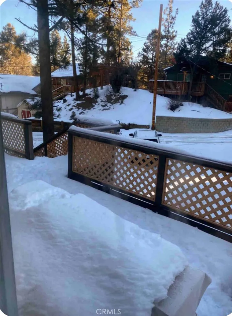 Charming Big Bear cabin, fully furnished and equipped with everything you need! This well-designed mountain retreat features a cozy living room with a Franklin wood-burning fireplace, perfect for staying warm and comfortable. The kitchen has been beautifully upgraded with granite countertops, stainless steel appliances, and knotty pine cabinets, blending modern convenience with rustic charm. The bathroom boasts modern tile, new fixtures, and a luxurious jetted bathtub. With two oversized bedrooms accommodating multiple beds, this cabin is ideal for hosting guests or as a vacation rental. Enjoy summer BBQs on the spacious deck, accessible from both the kitchen and living room. The property also offers ample parking for two or more cars and additional storage space beneath the house. Situated on a short private road and just steps from the National Forest, this cabin provides the seclusion and tranquility youve been seeking!