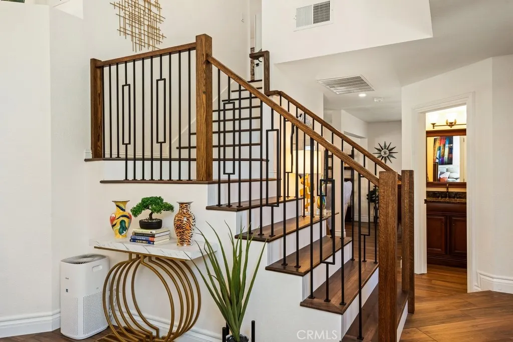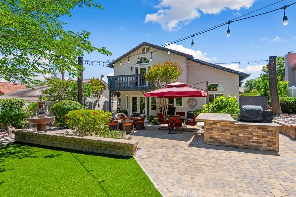 Welcome to a beautifully upgraded home that blends charm, functionality, and privacy in a sought-after neighborhood. A spacious family room and formal dining area greet you upon entry. Upstairs are three generously sized bedrooms, including a primary suite with a private balcony overlooking the serene backyard. An additional large bonus room with built-in cabinetry is ideal for an office, playroom, or craft space. This tastefully upgraded home features a custom country kitchen with quartz countertops, white cabinetry, stainless steel appliances, a deep farmhouse sink, and a breakfast bar. The kitchen opens to the living room with a gas fireplace, built-in TV (included), dining area, custom wine bar, and a barn door leading to a large storage or pantry space. The beautifully landscaped backyard offers custom pavers, mature trees, built-in seating with large umbrellas, a soothing fountain, and complete privacy with new vinyl fencing and no rear neighbors. With no HOA and low taxes, this move-in-ready home offers comfort, style, and peace of mindinside and out.