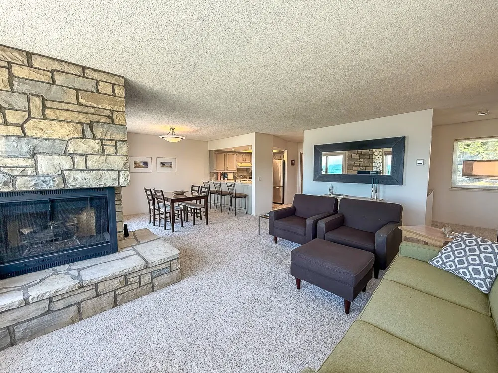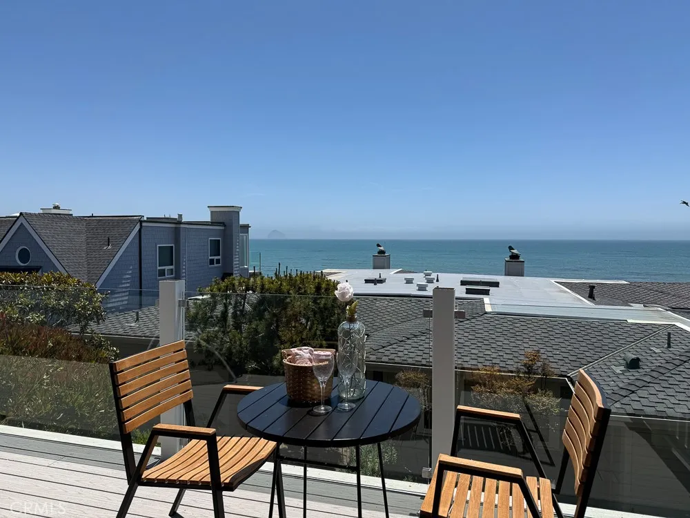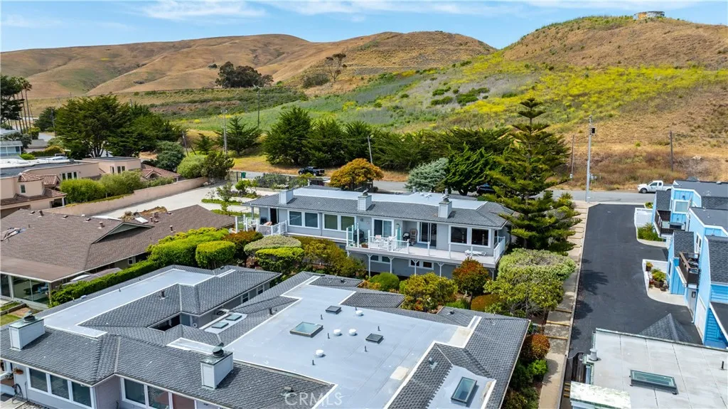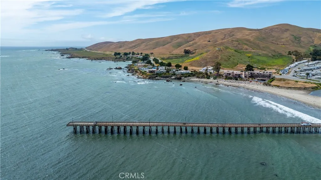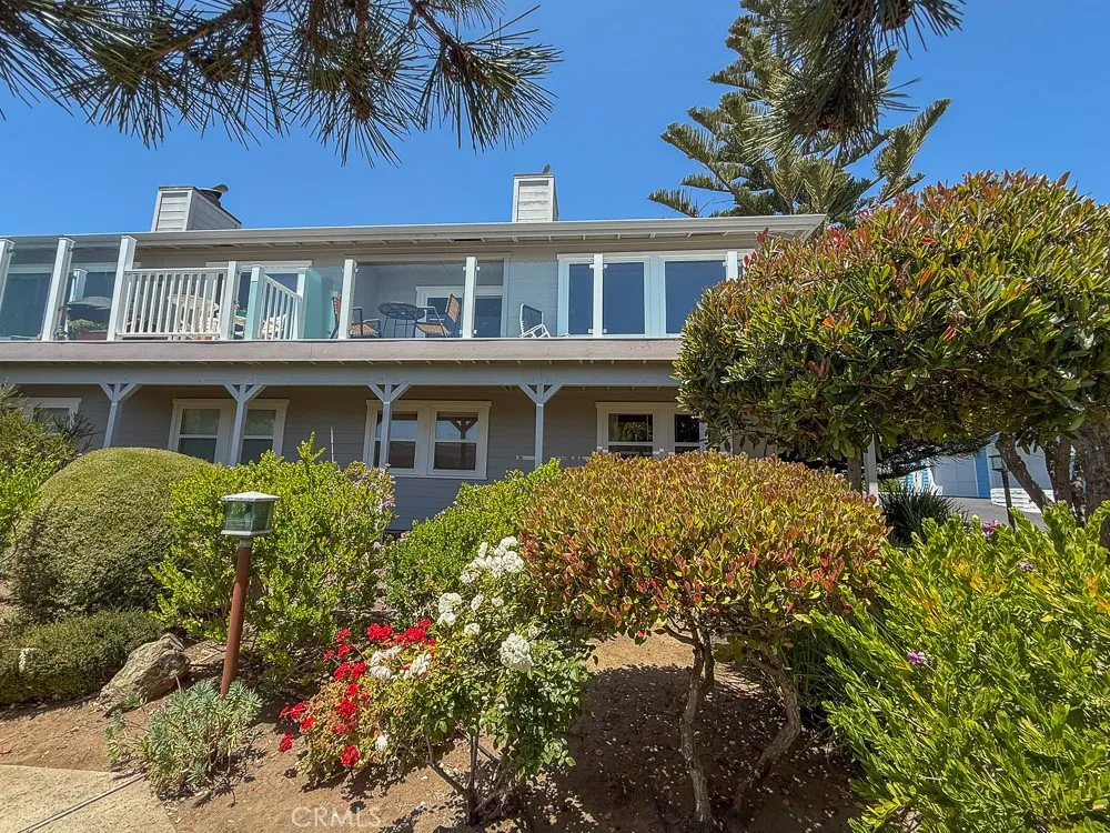 Enjoy some of the best views along Estero Bay, from the Cayucos Pier to Morro Rock, Montana de Oro, and beyond. This updated coastal condo is move-in ready, (ASK ABOUT KITCHEN PLANS) -- nestled along the pristine coastline north of downtown Cayucos in a six-unit complex. Watch the amazing SLO County sunsets, migrating whales, and ocean lifeall right from the comforts of home. This two-story end unit maximizes window light without adjoining neighbors to the south and offers a private entrance with established landscaping. Entering the home, an open staircase leads up to southwest-facing, wall-to-wall windows in the open living and dining area, with the upper floor perched up above the neighboring condo rooflines. The large private deck adds outdoor living space with new glass panels to highlight the amazing coastal views. Upstairs you'll find a stately gas fireplace, cozy kitchen with views of Morro Rock, bar seating, a large pantry/linen closet, and full bathroom. There are two large bedrooms on the ground floor with ample closets, lots of additional hallway storage, full bathroom with modern upgrades, and indoor access to the attached garage, with room for a small vehicle, EV charger, and backup generator plus an additional assigned parking space in the private community lot. Call Cayucos home--close to many charming and relaxing coastal attractions, the Cayucos Pier, newly renovated Cayucos Landing Vets Hall, shops, restaurants, and the trailhead for Estero Bluffs State Park.