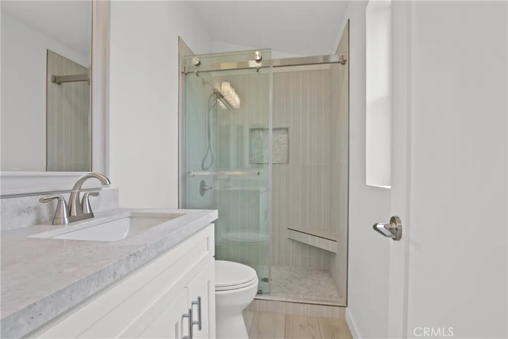 Welcome to the beautiful seaside community of Bayside Village Mobile Home Community...the best kept secret of Newport Beach! Located in a landmark location in the heart of this famous beach town and offering a resort lifestyle for fractions of the cost of neighboring communities, sets this completely reimagined gem. A 2 bdrm, 2 bath manufactured home that evokes a modern beach living vibe from the moment you enter the home through the Dutch door. Impeccably designed with fine finishes such as Quartz counter tops and custom porcelain tile back splashes, level 5 smooth coat walls finished in crisp white, recessed lighting and beautiful laminate floors. Take advantage of the top of the line stainless steel appliances in the kitchen that also features a multi-seat island with a stainless steel farm skin creating great prep space for cooking and entertaining. Abundant natural lighting from the large windows and skylights across the open concept floor plan emits an ambiance of luxurious comfort making this home perfect for entertaining and personal enjoyment. The primary room overlooks the lovely landscaped backyard with an adjoining ensuite bath featuring a beautiful stand alone, porcelain bathtub, walk in shower with porcelain tiling and a double-sink vanity topped with quartz countertops. There is a plethora of storage throughout the home with custom cabinets and closets. This home also has air conditioning and a tankless water heater. Total sq ftg is 1128. Located on land leased land. The monthly space rent is $3200 and includes water, sewer and trash with many fine amenities