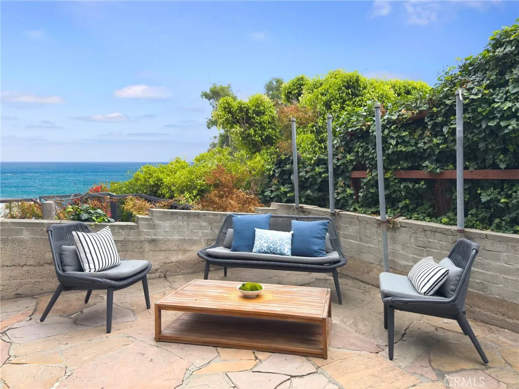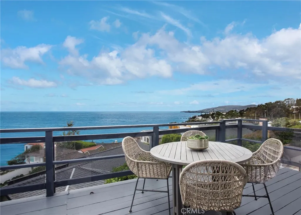 From breathtaking, 180-degree whitewater, coastline and Catalina Island views to its Cape Cod-inspired architecture, this versatile and spacious home captures the timeless charm of Laguna Beach. Just one row from the sand, the blufftop residence showcases panoramic vistas that span the coastline and beyond. Built in 1941, it offers exceptional privacy from the street, reserving the full impact of its jaw-dropping ocean setting for residents and guests. Expansive, unobstructed ocean views greet you immediately upon entry, with a light-filled main level that flows seamlessly from the dining room to a generous fireplace-warmed great room wrapped in vast windows. Breaking waves, glittering evening lights, Catalina Island, vivid sunsets, coastal hills, and Lagunas iconic shoreline all compete for your attention, creating a constantly shifting canvas of natural beauty. These sweeping views extend through both levels of the home, as well as a large deck ideal for entertaining. A powder room is also featured on this floor, and a fully appointed kitchen displays white cabinetry, Silestone quartz countertops, stainless steel appliances, an imported Blanco sink, and direct access to an attached two-car garage. Wood flooring enriches the main level, while abundant built-in cabinetry and storage are enjoyed throughout. Custom craftsmanship is evident in the beamed ceilings, wainscoting, shiplap, white wall panels, and crown molding. The lower level hosts three bedrooms and two baths, including an en suite with bonus space perfect for a studio, office, or creative retreat. Two additional