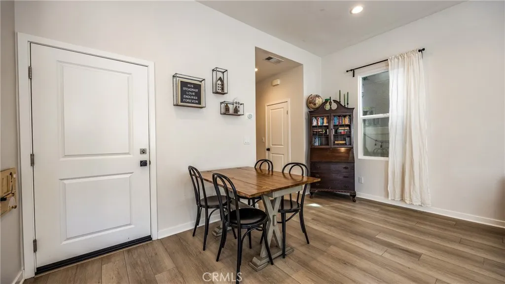 Price Reduced! Beautifully Upgraded Home in the Sought-After City of Corona! This turn-key property offers 1,626 sq ft of stylish living space, featuring 3 bedrooms, 2.5 bathrooms, and a 2-car attached garage. Step inside to an open floor plan with high ceilings, recessed lighting, dual-pane windows, laminate flooring, and plush carpeting throughout. The modern kitchen boasts white cabinetry, quartz countertops, glass tile backsplash, stainless steel appliances, pantry, and direct access to the backyardperfect for indoor-outdoor entertaining. The spacious primary suite showcases elegant wainscoting, recessed lighting, and an upgraded en-suite bathroom with dual vanities, a walk-in shower, and walk-in closet. Bedrooms 2 and 3 include ceiling fans and share a well-appointed full bath. Additional features include a convenient indoor laundry room with cabinets and shelving. The low-maintenance backyard is finished with pavers, artificial grass, and vinyl fencingideal for relaxing or entertaining. Enjoy resort-style amenities in the Bedford community, including parks, walking and hiking trails, a clubhouse, and a sparkling community pool and spa. Conveniently located near shopping, dining, and entertainment. Move-in readydont miss this one!