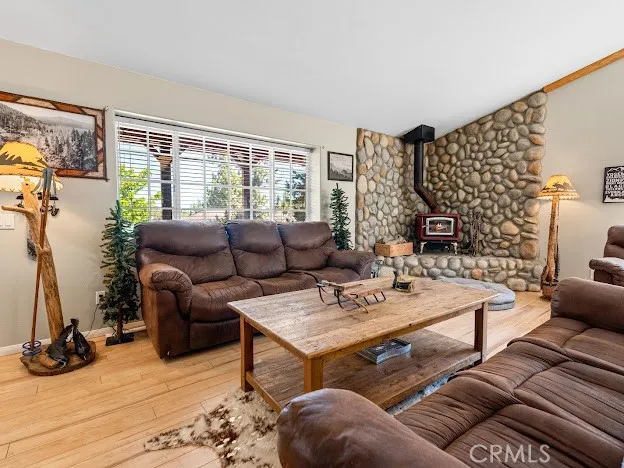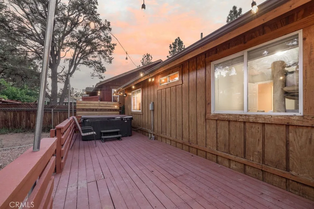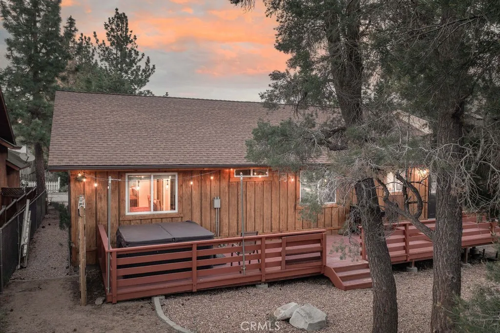 Welcome to your beautifully maintained mountain retreat in desirable Valley View pocket of Big Bear City! This charming 3-bedroom, 2-bath log-style home offers the perfect blend of rustic character and modern comfortideal for a full-time residence, second home, or long-term rental. Step inside to an inviting open floor plan featuring a cozy living area with a stone fireplace, perfect for cool mountain evenings. The living space flows effortlessly into the dining area and a well-equipped kitchen with newer appliances, ample counter space, and a functional layout perfect for both daily living and entertaining. Each bedroom is thoughtfully designed to create a peaceful and comfortable atmosphere. The spacious master suite features a private bath and serene mountain views, while two additional bedrooms provide great flexibility for family or guests. Enjoy outdoor living year-round with a large back deck ideal for relaxing or grilling, a covered front porch, and a fully fenced, newly landscaped yard. After a day of hiking or mountain biking nearby, unwind in the private Jacuzzi under the stars. This home also features a separate laundry room and an attached two-car garage, offering added convenience and ample storage for all your mountain gear. The quiet neighborhood sits just next to Maple Ridge and is close to the Maple Lane Trails and other outdoor recreation... and is just 5-8 miles from the lake, ski resort and many shopping & dining options in the Village! This is a home that you won't want to miss!!