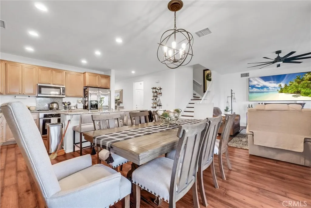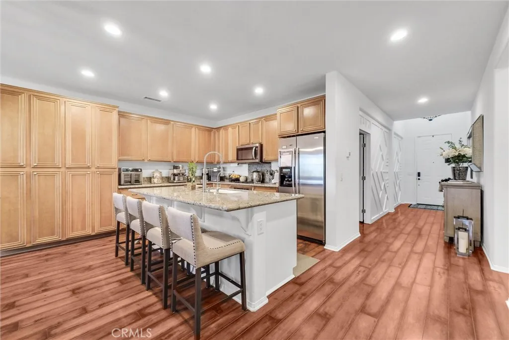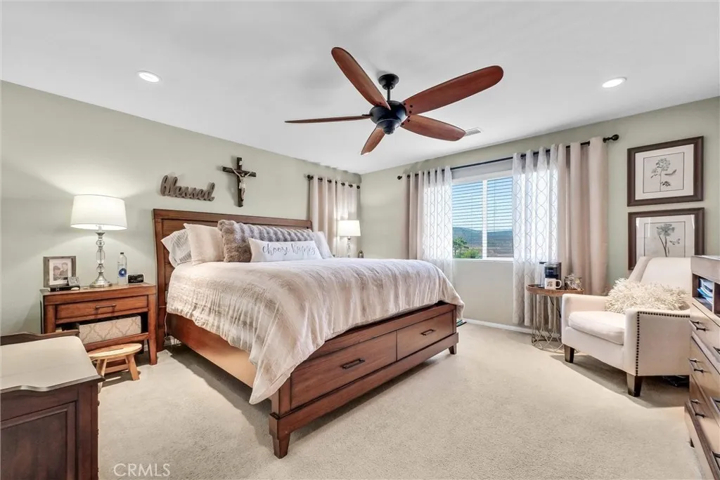 Welcome to your dream home in the peaceful Alberhill Ranch Community! This beautifully upgraded residence features 3 spacious bedrooms, a large loft, and thoughtful touches throughout. The interior showcases elegant flooring, custom paint, and recessed lighting that enhances the warm and inviting ambiance. The chefs kitchen is a standout with granite countertops, a generous serving island, stainless steel appliances, and ample cabinet space, including a built-in desk and storage area. Relax by the cozy fireplace in the living room or unwind in the expansive loftperfect for a home office, playroom, or media space. The master suite offers a walk-in closet and a private ensuite bath, while the secondary bedrooms feature mirrored closet doors for a sleek touch. A convenient upstairs laundry/service room adds everyday functionality. Enjoy the spacious 3-car tandem garage and all the perks of living in this quiet, well-kept neighborhood. This home blends comfort, style, and conveniencecome see it today!