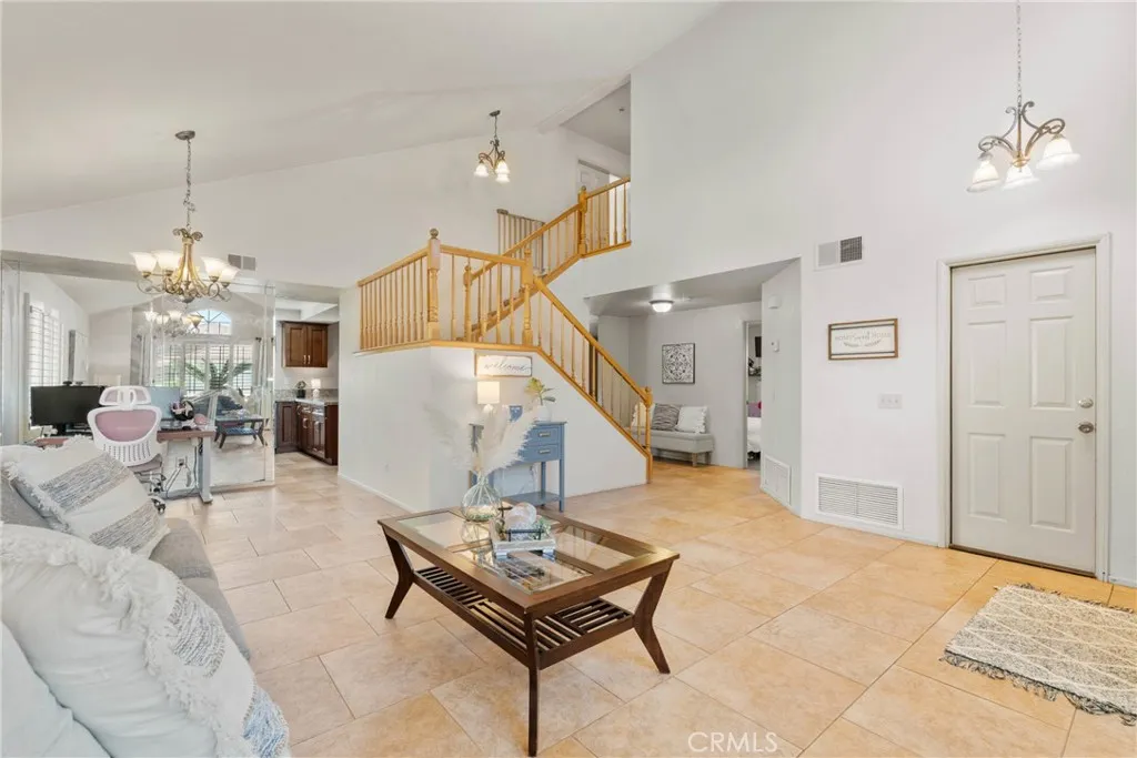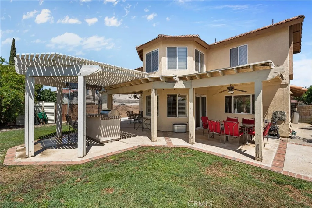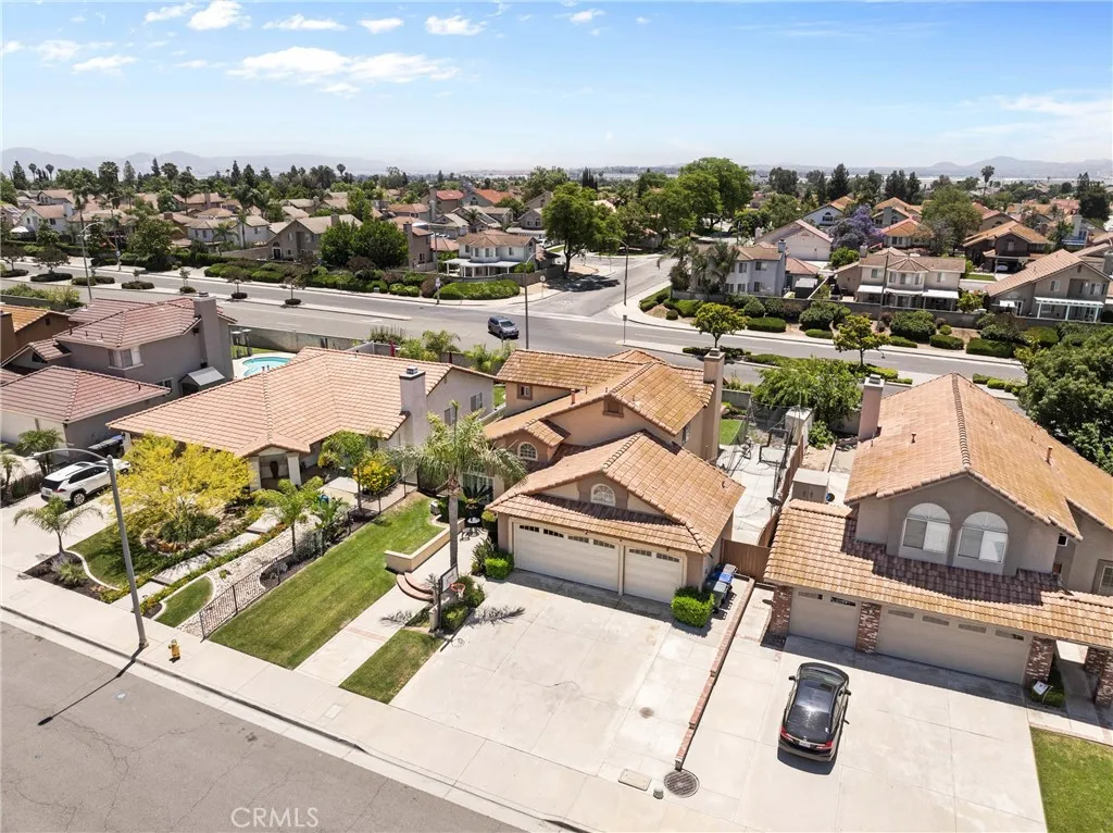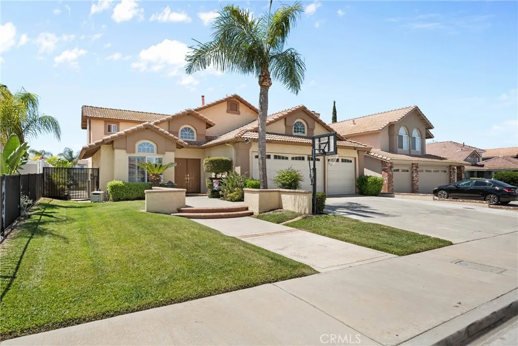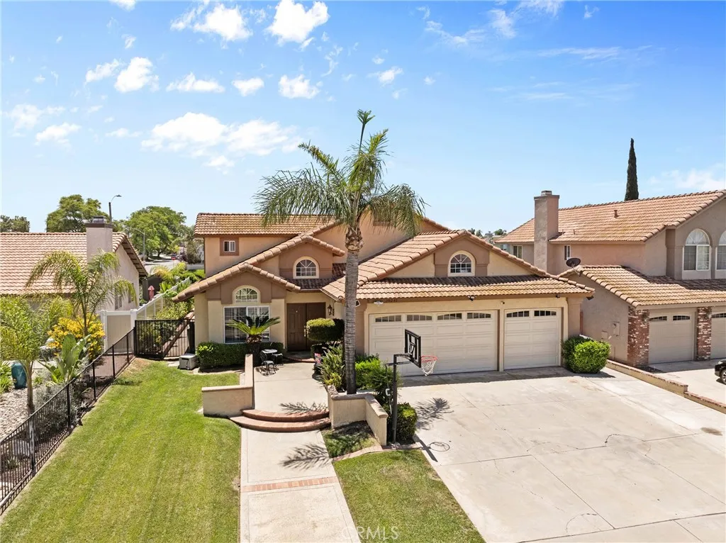 Discover exceptional living in this beautifully upgraded two-story home, perfectly located in one of Riversides most sought-after neighborhoodsOrangecrest. Nestled just steps from the expansive Orange Terrace Community Park, this residence offers an unmatched combination of elegance, comfort, and convenience. The main level features dramatic cathedral ceilings over a formal living and dining room, creating a grand first impression. The gourmet kitchen has been fully remodeled with rich granite countertops, stainless steel appliances, a custom coffee bar, and opens seamlessly to a bright breakfast nook and a welcoming family room with a charming brick-accented fireplace. A downstairs bedroom and full bath provide ideal guest accommodations, along with a spacious laundry room and direct access to the three-car garage. Upstairs, retreat to the luxurious primary suite with a spa-inspired en suite bath, dual vanities, a soaking tub, and a separate shower. Two additional bedrooms and a stylish hall bath complete the upper level. Thoughtful upgrades include plantation shutters, designer lighting, and ceiling fans throughout. The exterior is equally impressive, with an oversized driveway that accommodates up to four cars, a covered patio with a built-in BBQ island, and professionally designed landscaping and hardscaping. Located in a highly desirable school district, and just minutes to the 215 freeway, shopping, dining, and major employers, this home offers an ideal lifestyle for those seeking luxury, community, and convenience.