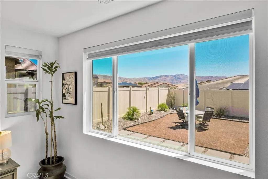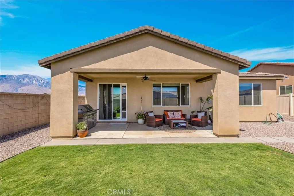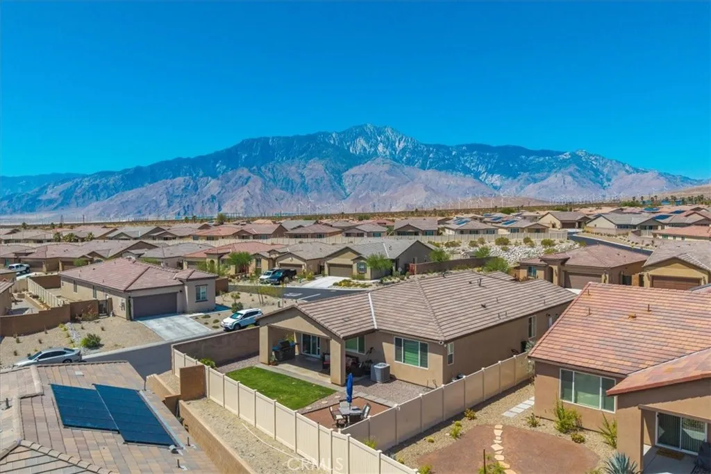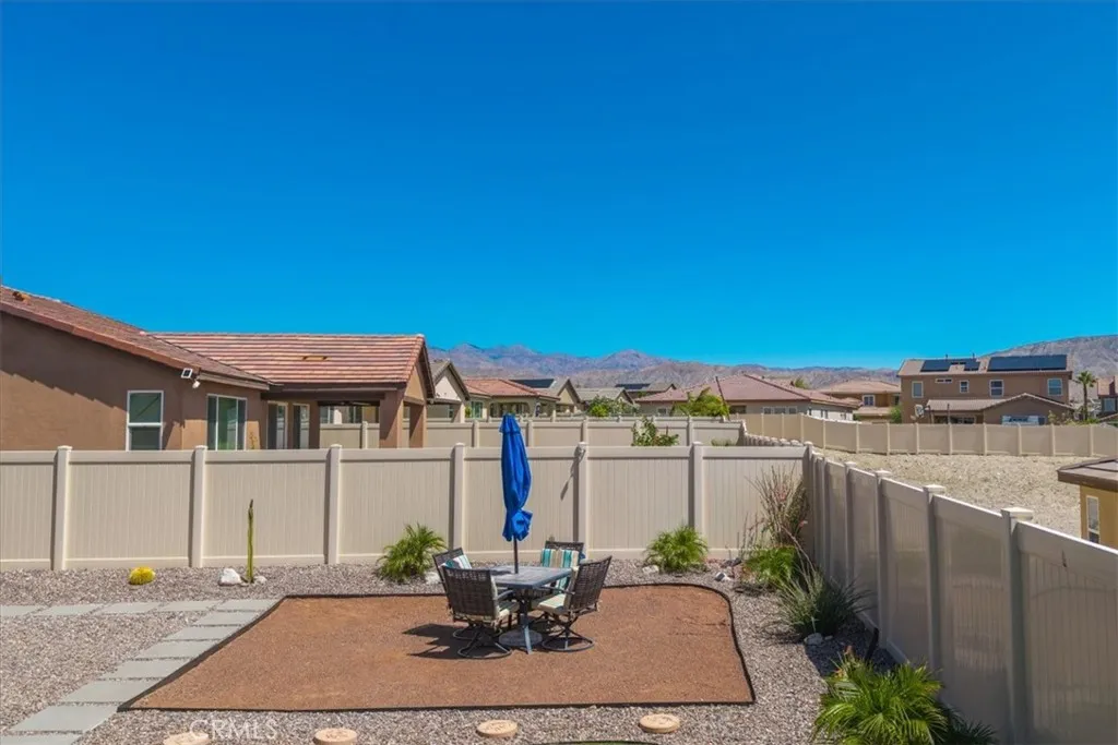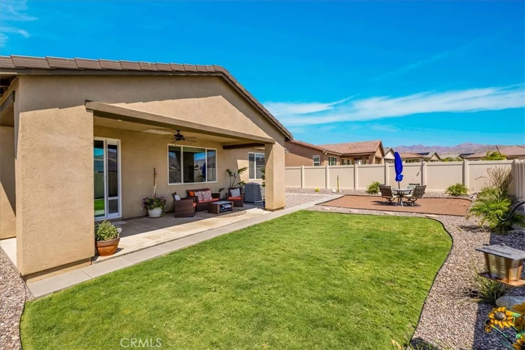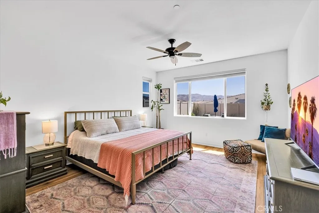 Step into modern elegance with this stunning 2,088 sq ft Lennar-built home, perfectly situated on a spacious corner lot in one of Desert Hot Springs' most desirable communities. Featuring 4 oversized bedrooms and 2 beautifully designed bathrooms, every inch of this home showcases true luxuryfrom the custom cabinetry to the pristine flooring throughout. Upon entry, you're welcomed by an open-concept layout that flows effortlessly from the bright foyer into the heart of the home. The chefs kitchen boasts a large center island ideal for morning coffee and conversation, seamlessly connecting to the expansive living room adorned with recessed lighting and ceiling fans. The primary suite is a private retreat, complete with a generous walk-in closet and spa-like bathroom offering dual sinks, a soaking tub, and a separate walk-in shower. Designed with energy efficiency in mind, the home comes fully equipped with solar panels at just $150/month and central A/C for year-round comfort. Step outside into a thoughtfully landscaped backyard oasis featuring lush grass, privacy fencing, and a covered patio with a ceiling fanperfect for relaxing or entertaining under the desert sky. With an HOA fee of only $153/month and just a 10-minute drive to Palm Springs, this home offers the perfect balance of serenity and convenience with access to both the Low and High Deserts. Dont miss your chance to own this move-in ready desert dream.