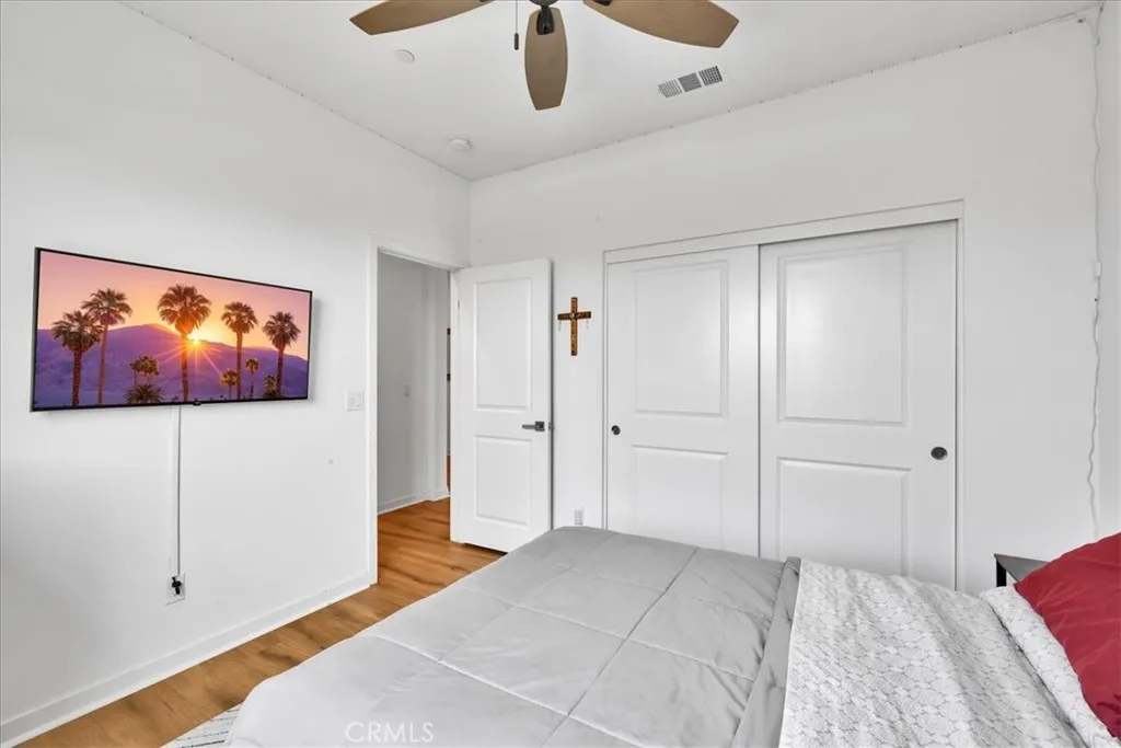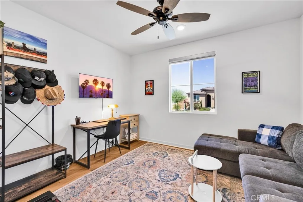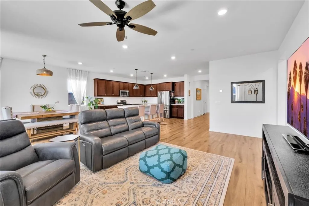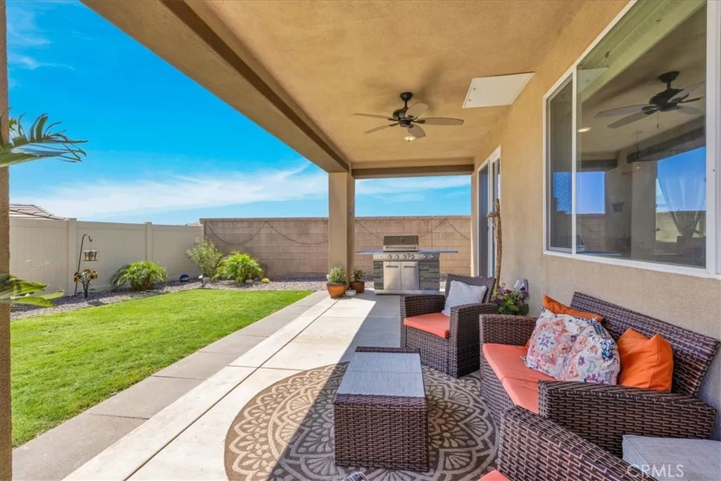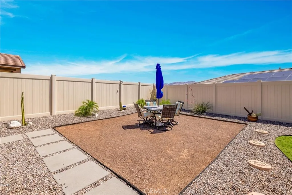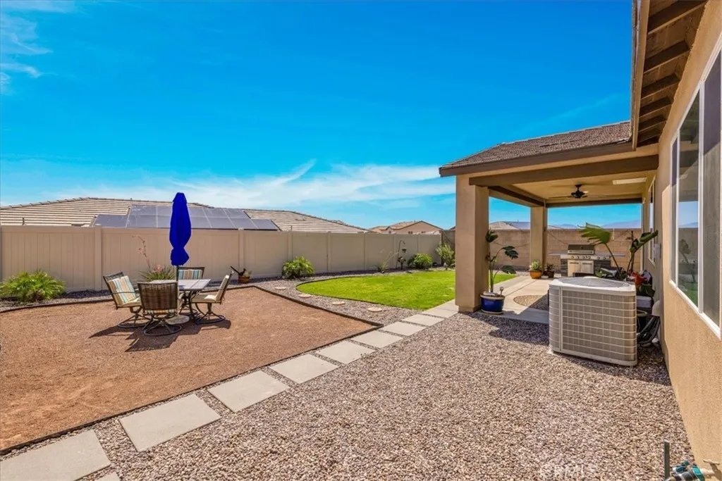 Step into modern elegance with this stunning 2,088 sq ft Lennar-built home, perfectly situated on a spacious corner lot in one of Desert Hot Springs' most desirable communities. Featuring 4 oversized bedrooms and 2 beautifully designed bathrooms, every inch of this home showcases true luxuryfrom the custom cabinetry to the pristine flooring throughout. Upon entry, you're welcomed by an open-concept layout that flows effortlessly from the bright foyer into the heart of the home. The chefs kitchen boasts a large center island ideal for morning coffee and conversation, seamlessly connecting to the expansive living room adorned with recessed lighting and ceiling fans. The primary suite is a private retreat, complete with a generous walk-in closet and spa-like bathroom offering dual sinks, a soaking tub, and a separate walk-in shower. Designed with energy efficiency in mind, the home comes fully equipped with solar panels at just $150/month and central A/C for year-round comfort. Step outside into a thoughtfully landscaped backyard oasis featuring lush grass, privacy fencing, and a covered patio with a ceiling fanperfect for relaxing or entertaining under the desert sky. With an HOA fee of only $153/month and just a 10-minute drive to Palm Springs, this home offers the perfect balance of serenity and convenience with access to both the Low and High Deserts. Dont miss your chance to own this move-in ready desert dream.
