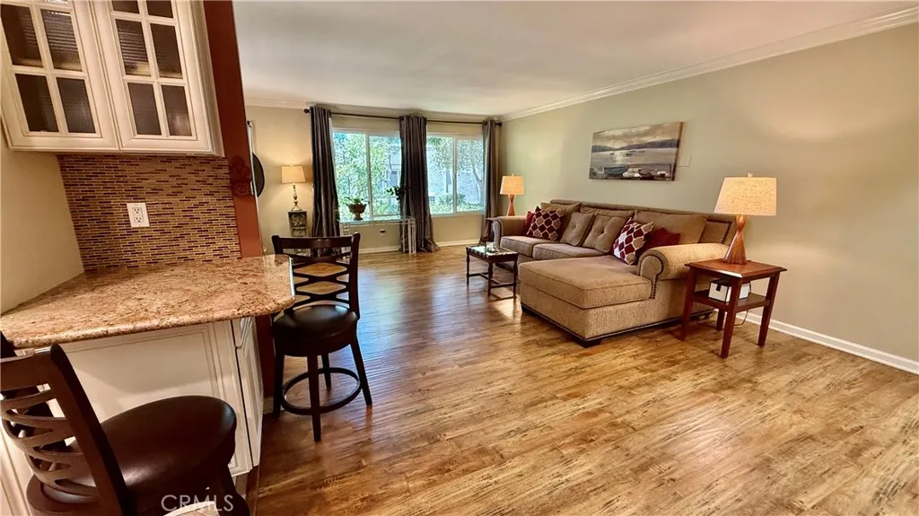Superb location! This upgraded, one-level Villa Nova residence is situated in a tranquil corner location. Surrounded by shade trees and lush greenery, it feels like living in a private enclave. NO Steps; NO ONE Above or Below. The original atrium has been enclosed to add sq. footage, creating a dining area and turning the 2nd bedroom into an office. Many Quality Custom Upgrades: CENTRAL HVAC; smooth ceilings with recessed lighting, dual-paned windows; beveled windows; rain glass; remodeled kitchen with double-oven, ample cabinets with pull-out & soft close drawers, pantry cabinet, lazy Susan corner cabinets & pull-out spice cabinets; remodeled bathrooms; remodeled primary bedroom; built-in shelves & drawers in closets; high-grade flooring; crown molding throughout; full-size indoor washer & dryer; new, relocated water heater. Large, secluded courtyard has built-in planters and new patio roof. Plenty of storage: two storerooms with built-ins within the courtyard and large upper and lower storage cabinets at Carport 3. Incredibly serene location, yet conveniently close to Gate 7, Community Center, market, golf courses, clubhouses, and all the amenities that make living in Laguna Woods so adventurous and so fulfilling!