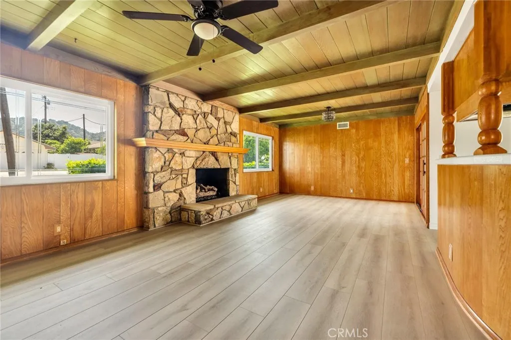 Welcome to Your Dream Home Located in Hacienda Heights, this single-level house features an entryway with stone planters and a wide door. This corner property includes 3 bedrooms, 2 bathrooms, and a separate laundry room, offering comfort and convenience. The interior is filled with natural light and well-designed elements. The living room features large diamond-cut windows, and the kitchen is equipped with new stainless steel appliances. The family room features a stone fireplace and opens to a backyard suitable for entertaining. The house has new paint and flooring throughout. The property features a two-car garage and a long driveway, providing ample parking.