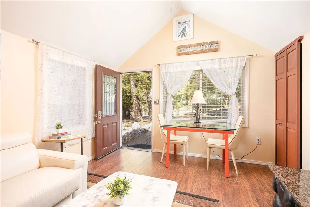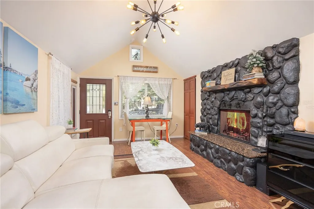 Welcome to your inviting mountain escape! Whether you're looking for a relaxing getaway or a high-performing investment opportunity, this beautifully updated 1-bedroom,1-bathroom cabin sits on a spectacular 9,650 sq ft lot amid mature plants & trees delivering a sense of quiet beauty. With over $71,000 in gross revenue for 2024 and $34,000+ from January through July of this year, this owner-managed short-term rental has an impressive track record of success! Even better, the current owner is offering valuable mentorship during the transition, along with trusted contacts for cleaning, maintenance and insider knowledge to help you hit the ground running. Greeted with an open-concept living area where a stunning stone fireplace creates the ideal cozy centerpiece and soaring ceilings and abundant natural light add to the spacious, airy feel. The kitchen features modern updates including stainless steel appliances and has a seamless flow into the living spacegreat for whipping up a meal or relaxing after a day of adventure. Enjoy your morning coffee on the inviting composite front deck, surrounded by the natural beauty of pine, manzanita and flowering lilac plants that grace the front yard with color and charm. The generously sized bedroom boasts high ceilings, a pretty wood accent wall and plenty of light, while the bathroom offers a luxurious, spa-like experience with a custom-tiled shower and modern vanity. A tankless water heater and inside washer/dryer provide added convenience for guests and owners alike. Outside, enjoy the expansive fenced backyard with a large rear deck,