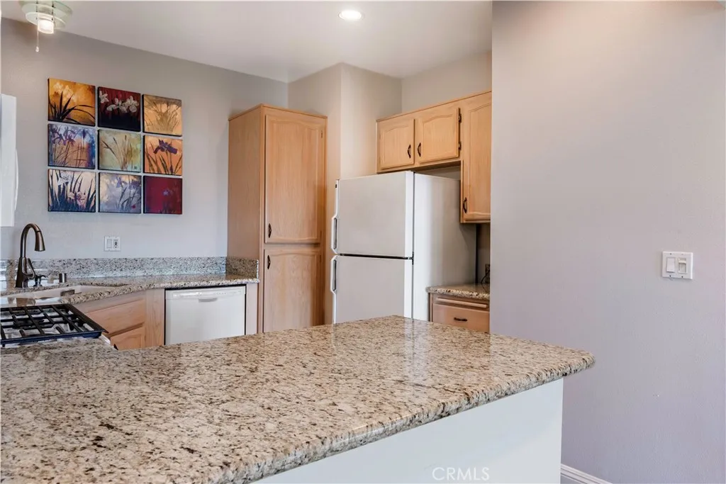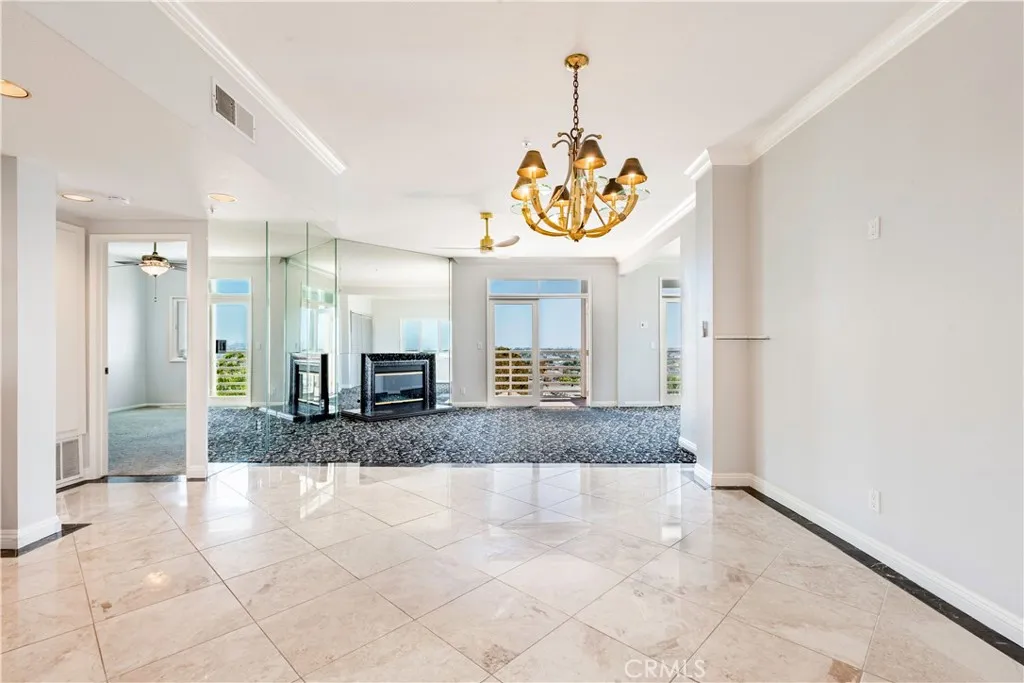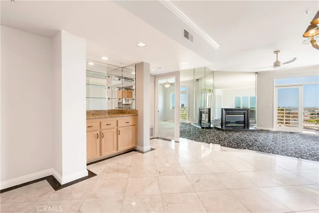 1,512 square feet of living space with an expansive living room that connects to the wrap around patio accessed via the double set of French doors. From both the living room and the patio you will experience SPECTACULAR 180 degree views of the city, the coastline, Catalina and Palos Verdes. Both bedrooms also enjoy the same views. The primary bath has a walk-in shower, double sinks and a Jacuzzi brand walk-in tub with a door that allows easy access. There are two closets (one a walk-in) both with mirrored doors. Privacy toilet door. The large skylight in the primary bathroom provides a cascade of natural light to the center of the room. The second bath has a tub/shower combo with a glass enclosure. The kitchen has granite counters and opens to the dining area and the living room. There is combo oven/cooktop with 4 gas burners. New GE microwave. A refrigerator and a Maytag dishwasher. The double sink has a pull-out faucet. the cabinets have ample storage and many pull-out shelves. There is also recessed lighting in the kitchen and living area. The dry bar with glass shelving is located between the kitchen and living room. The dining area is adjacent to the kitchen and opens to the living room with a gas operated fireplace. Ceiling fans in primary bedroom and the living room. Central air conditioning and forced air heat. Inside laundry room. The unit has 2 covered garage parking spaces #27, 28. The elevator is conveniently located to the unit. Beautiful community pool, spa and grass area.