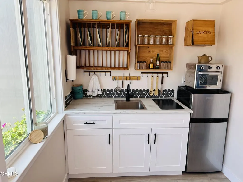 This is a unique, extensively remodeled move-in ready 3 bedroom 2 bathroom 950 sq foot attached home in the much sought after 55 + community of Hueneme Bay. SELLER IS OFFERING 3 MONTHS OF HOA FEES TO BUYER. The property has a separate efficiency with rental potential, investors dream, it includes a kitchenette, bedroom, full bathroom and semi-private patio. The dining/living area opens to a large 530 total square foot used brick patio with gardens, perfect for relaxing or entertaining. This special home has new dual paned windows, new LVP floors, paint, hardware, lighting, and worry-free new ABS SEWER AND DRAIN LINES. It has been repiped and has a new gas tankless water heater. Updated Electrical. Home features an all new kitchen with soft - close white Shaker cabinets, desk, quartz countertops, stylish backsplash, self- cleaning stainless steel gas stove. New Samsung stackable washer and dryer included. The first bathroom has a large walk-in shower with glass doors, double vanity with special features. The second bathroom has a one of a kind tiled shower. Don't miss your chance to own this rare property in a sought-after location near the Beach and Channel Islands Harbor. Situated on the coast between Malibu and Santa Barbara with ideal climate. The clubhouse is a short walk away and has a year round heated pool, saunas, spa, billiard room, library, lounge with flat panel TV, computer room with Wi-Fi and function rooms. There is a 9 hole pitch and putt golf course. Stroll the harborside farmers market. Come experience the peaceful, serene hidden gem of Port Hueneme 'The Fr