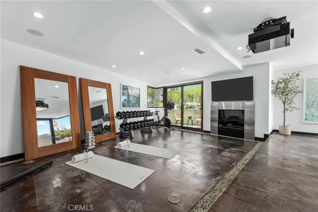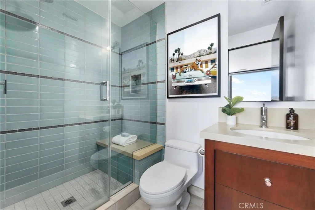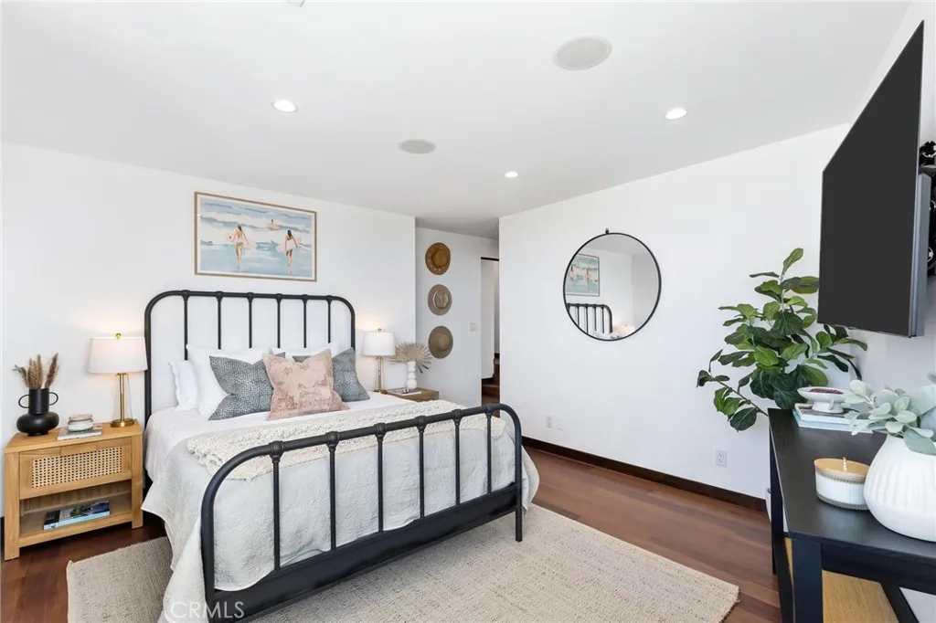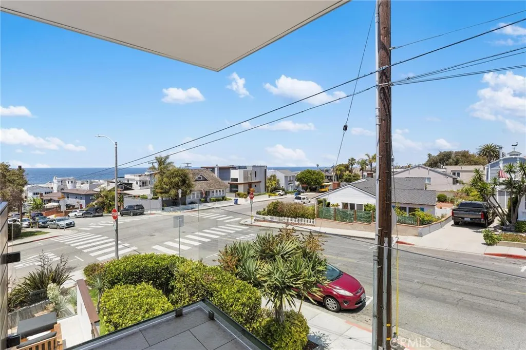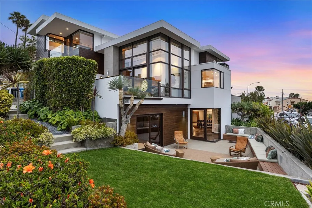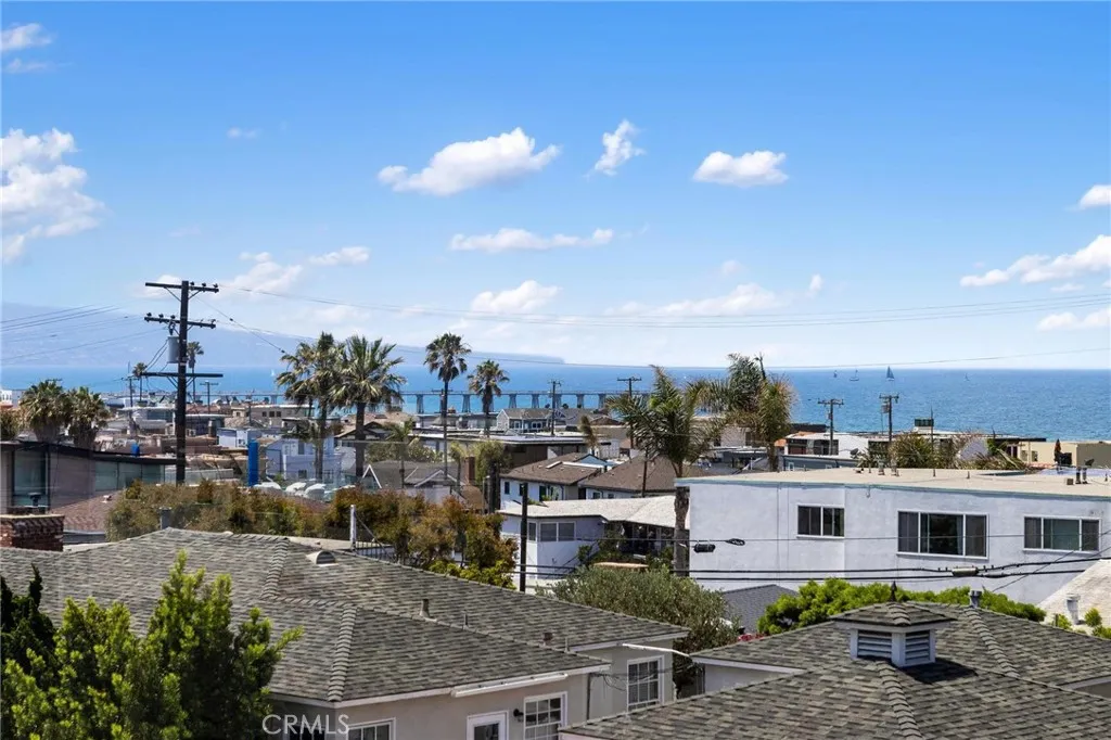 Welcome to The Koa Lanai House, a custom-designed architectural masterpiece by the late Patrick Killen, AIAfounder of Studio 9one2 and a pioneer of modernist beach design in Los Angeles. Set on a rare 3,524 sq ft corner lot just moments from the sand, this striking residence offers panoramic views from Malibu to Palos Verdes, including both Manhattan and Hermosa Beach piersalongside exceptional indoor-outdoor living rarely found this close to the beach. Inside, the open-concept living space features approx 14-ft soaring ceilings, walls of glass, and newly refinished Brazilian cherry wood floorseach plank a unique work of art. A large terrace expands the living space, while the chefs kitchen centers around a 9.5-ft custom Acacia Koa wood island with built-in pop-up TV, Sub-Zero fridge, Viking 6-burner range, wine fridge, walk-in pantry, and breakfast bar seating for six. A second terrace off the dining area offers views of Catalina and Palos Verdes. The main level also includes a powder room, recessed lighting, and integrated in-ceiling speakers. Upstairs, all three bedrooms feature ensuite baths, ocean views, and smart audio integration. The primary suite includes a custom-built-in platform bed, daybed nook, private ocean-view terrace, dual vanity bath with rainfall shower, ceiling-fill Acacia Koa soaking tub, and walk-in closet. The lower level houses an expansive flex space currently configured as a combined screening room and fitness area, with polished concrete floors, a 135" projection screen, wet bar, and decorative fireplaceplus a guest suite with full bath access an