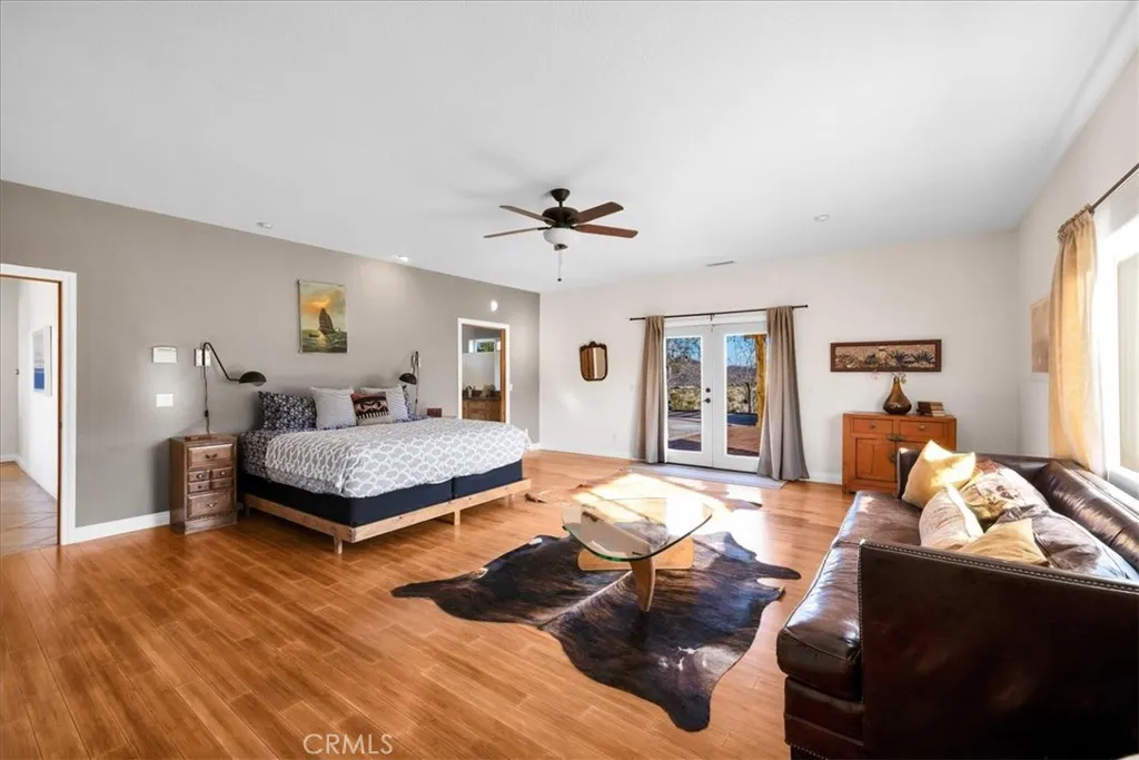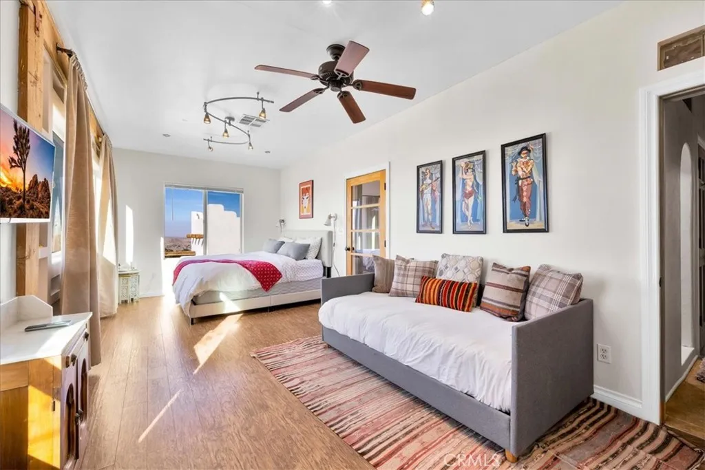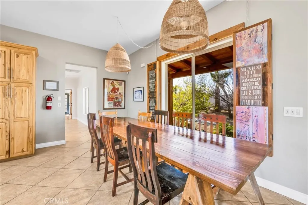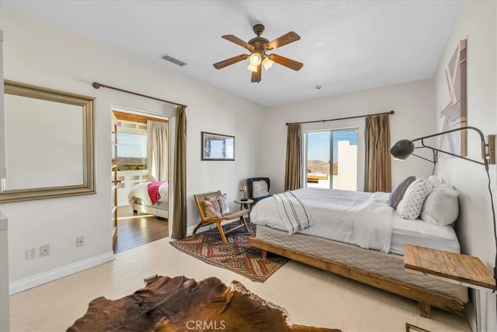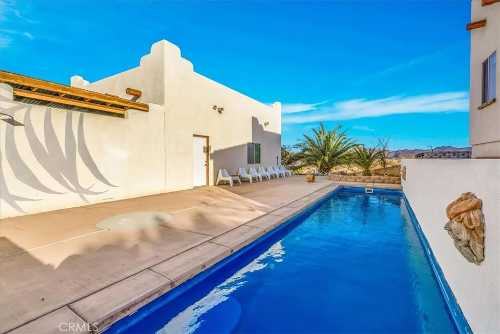 Welcome to your dream home in Joshua Tree, where desert living meets Santa Fe style! This beautiful house is perfectly located near the breathtaking Joshua Tree National Park, offering you a serene and picturesque environment to call home. With 5 bedrooms and 3 baths spread across 3120 sq. ft. of living space, this spacious oasis provides you with plenty of room for both relaxation and entertainment. Situated on 2.5 acres of desert land, this house ensures your privacy and tranquility. The fully fenced and secured property features stucco walls, providing a sense of safety and peace of mind. As you approach the house through the beautiful double door entry, you are greeted with an open floorplan that invites you to explore and unwind. The kitchen is a chef's delight, boasting granite counters, a kitchen island, and stainless steel appliances that elevate both its style and functionality. Enjoy the convenience of a wine cooler, perfect for entertaining guests or indulging in a glass of your favorite vintage. The bathrooms continue the sleek and stylish theme, featuring granite counters, a soaking tub, a vanity area, a walk-in shower, and a shower/tub combo. Step outside into the enchanting exterior space, where you'll find multiple seating areas that offer endless opportunities for relaxation and outdoor gatherings. Lounge on the wooden deck, fire up the outdoor BBQ, or sway in the gentle breeze on the hammocks while taking in the stunning views of the desert landscape. A true oasis wouldn't be complete without an in-ground pool and spa, providing the ultimate spot for cooli