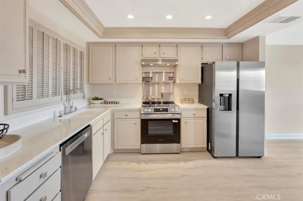 Top Floor! Nice VIEW VIEW VIEW! LIGHT and BRIGHT! Unit JUST REFURBISHED - SELLER PAINTED THROUGHOUT and NEW CARPET BOTH BEDROOMS - plus NEW stove, NEW dishwasher, NEW range hood, newer stainless frig installed. New luxury vinyl flooring throughout, new baseboards, refurbished condo. PRESTIGIOUS GATE 14 - VIEW VIEW VIEW! Two bedroom, two bath condo - lives large, charming condo - Various upgrades put in last several weeks - FRESH and CLEAN - Purchase of LW properties requires board approval of buyer as is typical in Laguna Woods purchases. Carport across street (couldn't be any closer) is #10. HOA fee is $932/mo and includes water, sewer, trash, basic cable (over 100 channels) and much, much more! Laguna Woods Village is an active, 55+ adult community for seniors - is enhanced by many amenities - fare-free bus service, guarded gates, security patrol, over 200 clubs, golf courses, lawn bowling, full-length 27-hole golf course, hiking trails, driving range, tennis courts, horse stables, RV storage, nursery gardening plots, social clubs, swimming pools, tennis courts, walking trails, bocce ball, clubhouses, nearby restaurants, banks, medical facilities and much much more! Conveniently located near 5 fwy. Strict smoking regulations in place.