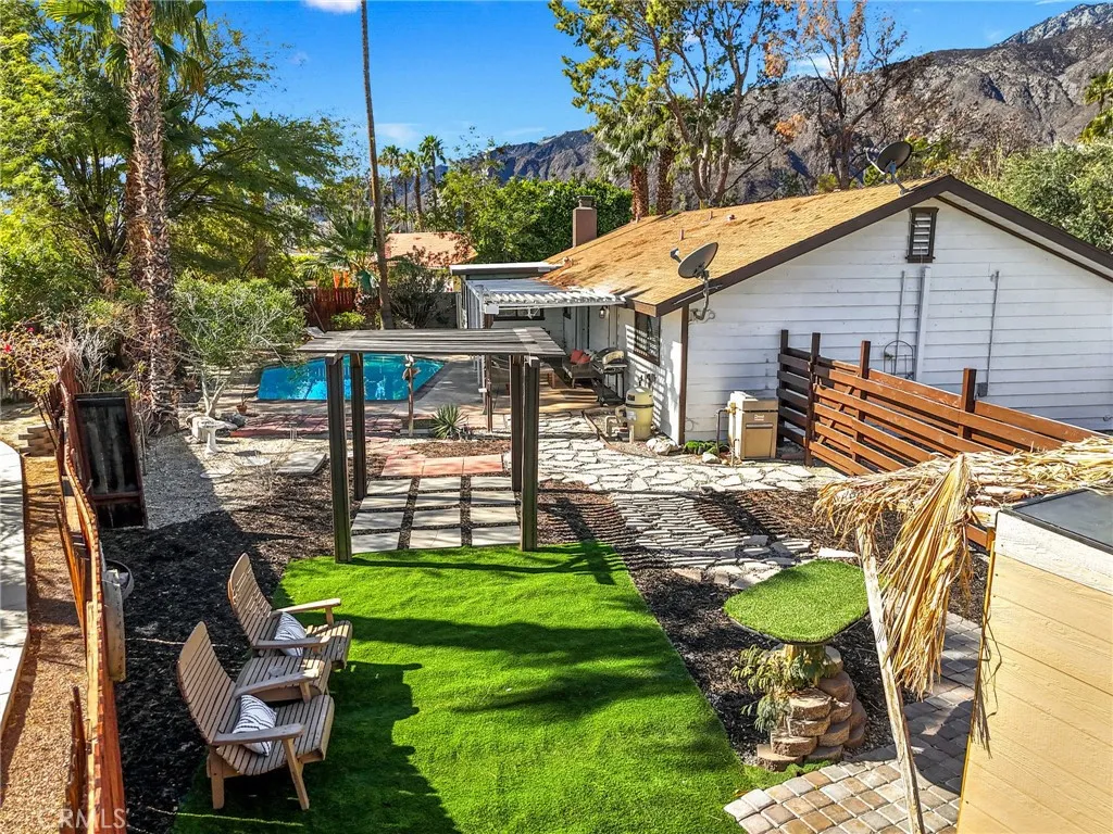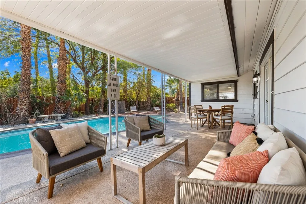 Modern Palm Springs Entertainer's Paradise! This stunning 4-bedroom, 2-bathroom home has been extensively remodeled to blend modern elegance with the ultimate indoor-outdoor California lifestyle. Situated on an expansive .28-acre lot, this 1,380 SqFt home is designed for entertaining and relaxation. Step inside to discover brand-new flooring throughout, a gorgeous chef's kitchen with sleek new countertops, custom cabinetry, and top-of-the-line appliances. Both bathrooms have been beautifully upgraded. The real showstopper is the resort-style backyard, a true California dream. Unwind under the covered patio, sip cocktails at the outdoor bar, or take a refreshing dip in the pool. With plenty of lush grass area to lounge and soak in the sunshine, this home is perfect for entertaining or peaceful relaxation. Don't miss this rare opportunity to own a modern slice of Palm Springs paradise! Schedule your showing today.