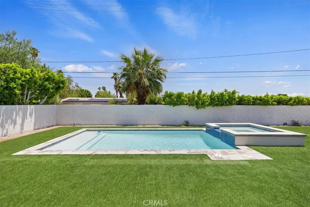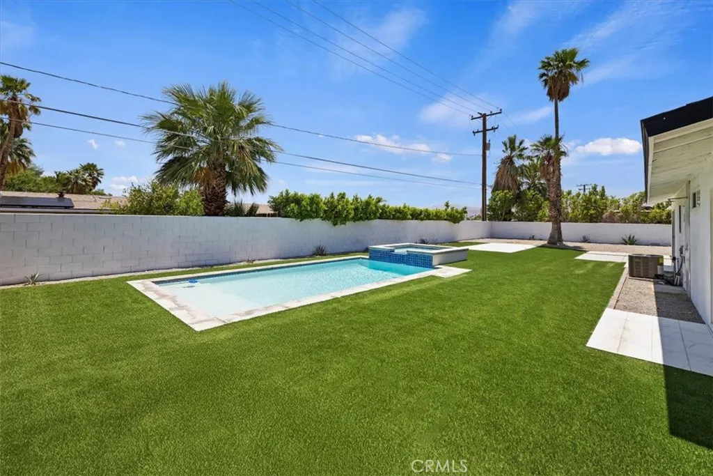 Welcome to your dream oasis in North Palm Springs. This fully updated pool home is situated in the heart of the city, within Desert Park Estates, offering breathtaking views. Prepare to be amazed as you enter a home that has been meticulously reimagined from top to bottom, creating the perfect blend of modern elegance and comfort. The centerpiece of this home is the new open-concept kitchen and living area, designed with both functionality and style in mind. Every detail has been carefully considered, from the newer windows with sliders that flood the space with natural light, and a new AC condenser that ensures your comfort year-round. Venture outside and be greeted by a meticulously landscaped front and backyard, adorned with easy-to-maintain artificial turf. The aesthetic appeal extends to the ultra-modern garage door, creating an enticing curb appeal. The true highlight awaits you in the backyard: an immaculate newer pool, spa, and pool equipment that beckon you to unwind and enjoy the Palm Springs lifestyle to the fullest. Situated on approximately a quarter acre in one of Palm Springs' trendiest neighborhoods, this property truly offers the ideal blend of privacy and convenience. With its proximity to downtown, you'll have easy access to all the vibrant attractions the area has to offer. Notably, there are no HOA or land lease obligations, providing you with even greater freedom and flexibility. This home is attractively priced to provide exceptional value. Act now to secure your future in the Palm Springs paradise. To help visualize this home's floor plan and to high