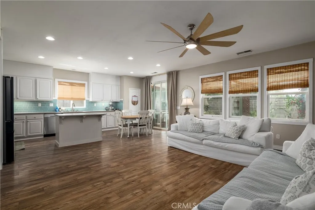 This home qualifies for a $20,000 grant which can be used for down payment and/or closing costs! Beautifully Upgraded 4-bedroom Single Story home with office/potential 5th bedroom. Featuring 2.5 bathrooms and NO HOA with Low Taxes, this home offers both style and value! RV Potential and NO REAR NEIGHBORS! Step inside to find custom touches throughout, including elegant wainscoting, wood accents, upgraded light fixtures, and durable laminate flooring. The kitchen is a cooks dream with a center island, and newer stainless steel appliances perfect for entertaining! The spacious primary suite is your private retreat, featuring two walk-in closets and an elegant ensuite bathroom with dual sinks, a soaking tub, and a separate walk-in shower. Enjoy meals in the stunning formal dining room, ideal for family gatherings. The front courtyard is lush and inviting, while the backyard is a true retreat with no rear neighbors, a shaded wrap-around patio, cool decking, garden boxes, mature trees, and large side yards offering plenty of space and privacy. RV potential adds even more value. Located near shopping, dining, and schools, this unique property blends comfort, convenience, and charm. Dont miss your opportunity to own this one-of-a-kind home in a prime Hemet location!