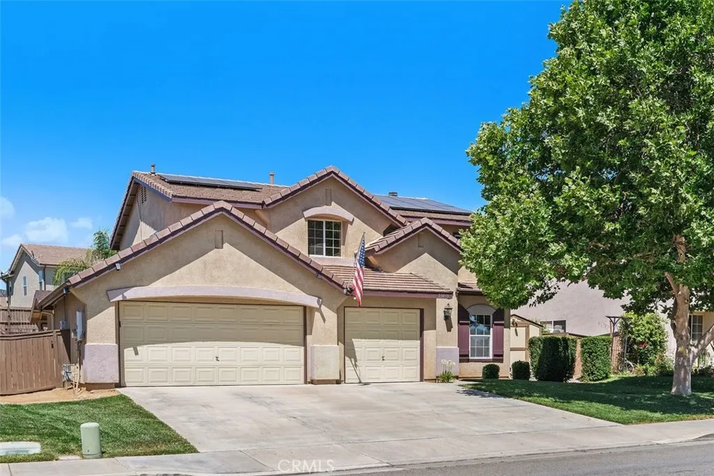 Lightening only strikes once and this is your opportunity to grab it! Location! Location! Location! Located in Southwest Wildomar, right next to Murrieta, this adorable home will knock your socks off as you will be in awe of the floorplan. A large living area welcomes you into this lovely home, with luxurious lush carpet flooring, that is well maintained. The light & bright Kitchen adjoins the spacious Family Room, lots of windows for natural light, cozy fireplace in the family room, to keep you warm in the winter, tons of cabinets and a huge walk-in pantry, leading to the 3 car garage, that has Epoxy flooring and tons of built in cabinets. Upstairs you will find the Primary Bedroom, a luxurious bathroom, large walk - in closet, dual sinks, separate tub & shower & soaking tub. The additional 2 bedrooms are upstairs & spacious as well, both with walk in closets and ceiling fans, plus an upstairs loft! Additional amenities include custom patio cover, beautiful complete custom kitchen, perfect for outdoor entertaining, lemon, lime, cumquat fruit trees, paid off Solar, newer AC and furnace, covered gazebo with spa, ceiling fans, misters, security system by ADT, and oversized shed. This home has low taxes, NO HOA & is located within easy freeway access, & close to shopping & restaurants and the acclaimed Wine Country. Theres no place like home & this home awaits your arrival. We welcome your consideration of ownership in this outstanding charming and gem of a place to call home. Hurry on this one!