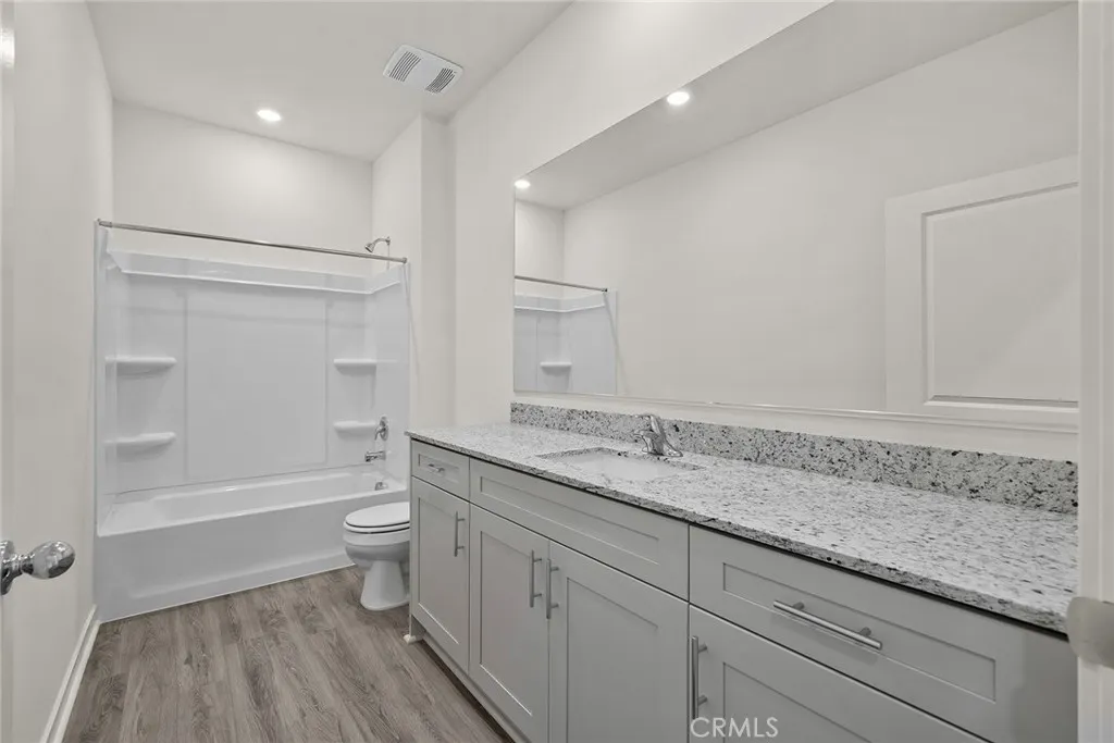 Featuring four spacious bedrooms, the layout also includes a versatile flex room, ideal for a home office, playroom, or additional living space. The open-concept design connects the kitchen, family room, and dining area, creating a seamless flow perfect for both everyday living and entertaining. The kitchen is a highlight, equipped with modern stainless-steel appliances, elegant plank flooring, and a walk-in pantry that provides ample storage. A covered porch and patio extend the living space outdoors, ideal for relaxation or hosting gatherings. The master suite offers a retreat-like experience with a dual sink vanity, a step-in shower, and a separate private toilet room. The secondary bathroom features a convenient tub/shower combination. Additionally, a well-appointed mud room enhances practicality, offering a dedicated space for managing everyday essentials and keeping the home organized. A dedicated laundry room rounds out the home's functional features, ensuring convenience and efficiency.