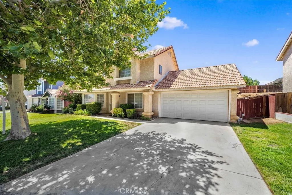Prime location for West Palmdale spacious (3) bedroom and 2.5 Bathroom home with dual car garage. Living room and dining room with woodburning fireplace + surrounded with brick facias. Formal dining room with chandelier. Kitchen has oak cabinets with tile counter tops and a dishwasher. There are (2) bedrooms with wardrobe closets. Off the hall upstairs is a full bathroom with shower/tub combination. Master suite has a private bath with dual sinks and walk-in shower. This home needs some domestic repairs but there are great schools in area and plenty of shopping centers. Not too far from Maria Kerr Park, Antelope Valley Mall and access to 14 Freeway. Large backyard with covered vinyl patio + concrete slab. There are laundry hookups inside garage, put this one on your list!