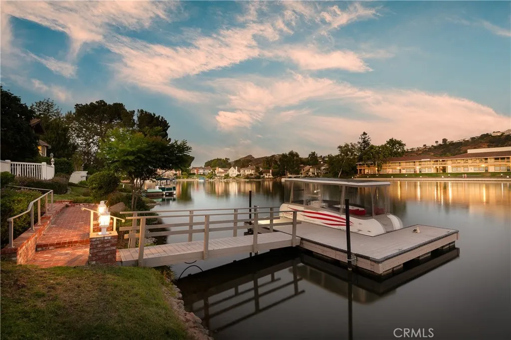 A Hidden gem, Rare Double Lot. This property is within the prestigious guard gated community of Westlake Island, an oasis of beauty & sophistication nestled in the heart of Westlake Village. With over 100 feet on the main channel with breathtaking panoramic views of the marina, rolling hills, and Yacht Club. Situated on a 11,250 sq ft lot, this estate offers unmatched serenity, privacy, and remarkably generous parking. Step inside and experience the natural light streaming through picture windows, illuminating a blank canvas ready to be reimagined into your dream California indoor-outdoor lifestyle. The primary features picturesque windows that showcase the stunning lake and mountain range. The suite also has space for an elevator from the office below. The secondary bedrooms are oversized, conveniently situated near the upstairs laundry room. Outside, indulge in resort-style living with a sparkling pool, spa, built-in BBQ, and a lush grassy yard dotted with mature fig, avocado, and grapefruit trees. Private dock access means sunset cruises and lakeside dinners are only steps away. Nestled in a 24- hour guard-gated community that blends luxury, convenience, and natural beauty, this is more than a home its a lifestyle.