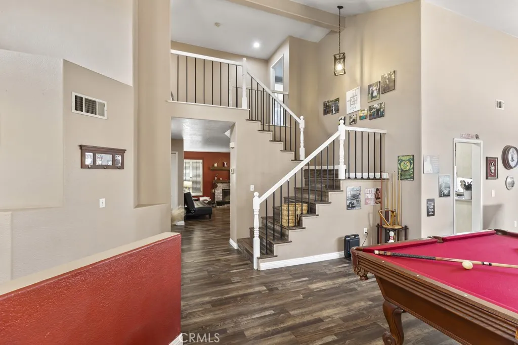 Welcome to your future sanctuary, where comfort meets relaxation in this stunning two-story home, perfectly designed for modern living and entertaining. Nestled on a generous lot, this property offers an impressive 2,390 square feet of beautifully appointed living space that boasts 4 bedrooms and 3 full bathrooms. Step inside to discover an open-concept entryway that seamlessly blends style and functionality, ushering you into a bright and airy living space thats perfect for both everyday living and hosting gatherings. Whether youre hosting a cozy movie night or a lively party, the offered indoor bar and pool table create the ultimate entertainment space. Imagine relaxing with friends over a round of billiards or mixing up your favorite drinks at the bar - this home is designed for many unforgettable moments. The primary suite, conveniently located on the upper level, offers a private oasis complete with a luxurious en-suite bathroom, ensuring you'll have your own escape after a long day. Enjoy privacy and tranquility, with ample closet space and beautiful views of the surrounding landscape. The two additional bedrooms upstairs share a charming Jack and Jill restroom, designed to accommodate family or guests comfortably while maintaining privacy and convenience. Additionally, there is a single bedroom downstairs - offering continued privacy for guests and/or space for a potential office to make your own!! Step outside to your very own retreat! The expansive backyard features an above-ground pool and spa, perfect for soaking up the sun and enjoying endless summer days. An am