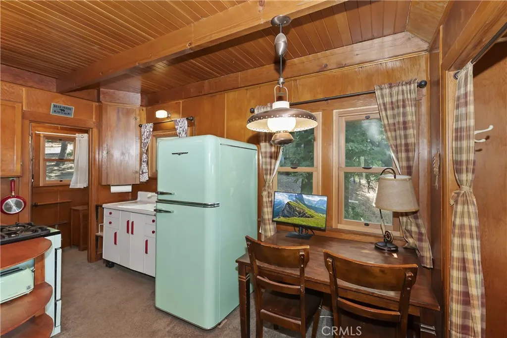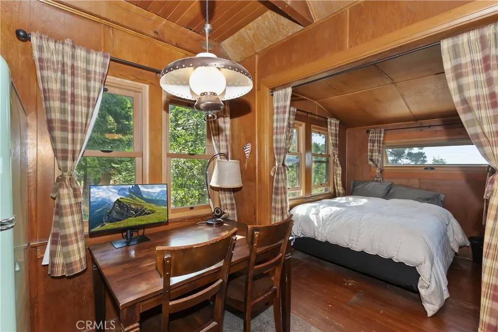 Perched at a true mile high, this cabin borders national forest and offers panoramic views that sweep from towering pines to twinkling city lights far below. Located in the desirable neighborhood of Strawberry Flats, sits this nearly 100 year old cabin that has been Lovingly updated just enough, without taking all of the charm away. The owners have created a truly enchanting & unique living space they have enjoyed for many years with family & friends. The main floor offers the cozy living area with warm wood walls & beamed ceilings. Vintage rock fireplace with efficient gas insert makes this the ideal spot to settle in & relax. Just adjacent is the small but efficient kitchen space complete with modern yet vintage looking appliances with the perfect splash of color. There is also a 3/4 bath on this level & a sun filled sleeping area. Upstairs there is a sleeping loft which makes a great space for extra guests. From the living room you can access the weatherproof glass enclosed deck area with the best 4th of July fireworks view, or just capturing the city & far valley views anytime. The lower floor which can be accessed either inside the house our outside around the side features a spacious flex room! This can be used for sleeping, gathering, movie watching or whatever you may need. There is a separate heater on this level for those chilly winter evenings. From this room you can access what the owners call the "tea room" which has a beautiful view out to the forested area surroundings & the valley lights below. This is the perfect place to stay warm & cozy while watching sno