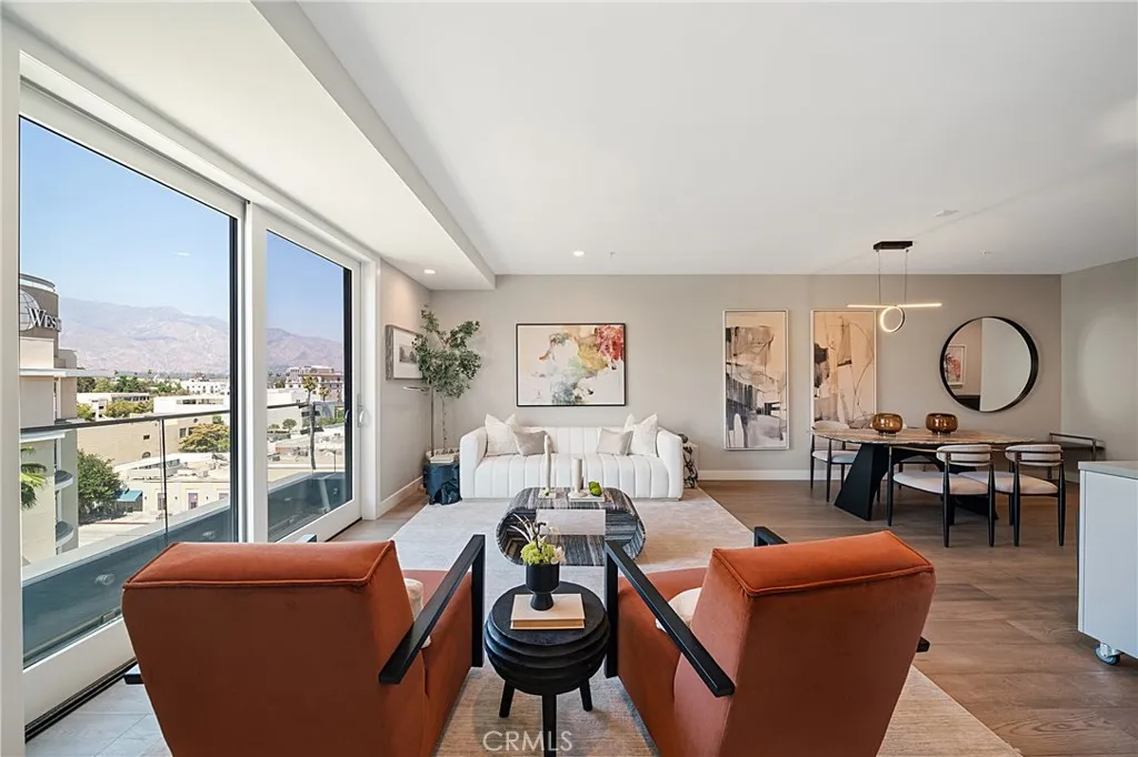 Major price improvements--A clear gain for buyers! Gated, secured gates, two parking spaces, decent HOA fee, water, gas, trash are included. Discover unparalleled luxury in this coveted south-facing one bed, one bath plus den condominium, located in this newly built high-rise. Floor-to-ceiling pop-out balconies showcase sweeping views of the San Gabriel Mountains and city skyline, filling the open-concept living space with abundant natural light. The modern kitchen features high-end stainless steel appliances, quartz countertops, and sleek cabinetryperfect for effortless entertaining. The serene bedroom offers a tranquil retreat with generous closet. The elegant bath boasts premium finishes and a spa-like ambiance. Step onto your private 88 SF balcony to enjoy the ever-changing skyline and peaceful surroundings. This exclusive residence boasts top-tier amenities, including secure FOB and ButterflyMX access, an Amazon Hub locker in the main lobby, and gated underground parking for convenience and peace of mind. This prime location places you within steps of world-class dining, upscale shopping, high-end chain gym Equinox and cultural attractions. Experience the perfect balance of urban sophistication and natural beauty in this exceptional condowhere luxury meets lifestyle. Dont miss this rare opportunity to own one of the best views in the building! Enjoy the Rose Parade from the room, and terrace, and the balcony!