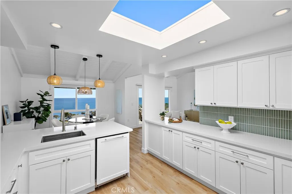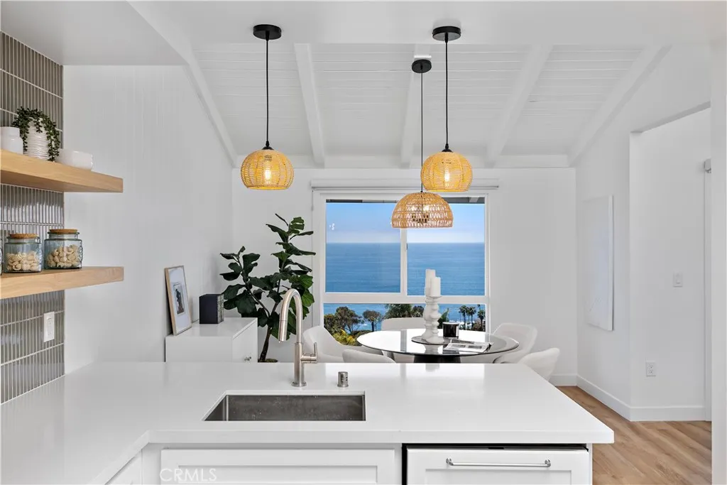 Must see!! A luxurious coastal retreat perfectly capturing the elegance and stye of upscale beach living. Completely remodeled and offering stunning panoramic views of the ocean, Catalina Island, white water, rocks, and sand from every rooma full sensory experience surrounded by the Pacific Ocean and Laguna's Greenbelt. One of Laguna's most serene locations! This spacious 2 bedroom, 3 bathroom condo has been thoughtfully reimagined with a blend of high-end finishes and comfortable design. The upper level welcomes you into a spacious light-filled living room with cathedral beamed ceilings, painted tongue and groove walls, a cozy gas fireplace finished with ceramic tile and a wood mantel, and warm wood-like vinyl floors. The open floor plan draws you past the living room to the captivating views, leading you to a cozy den that opens to a deckideal for relaxing, socializing, and enjoying the ocean breezes. The kitchen is a dream, featuring all-new stainless steel Thermador appliances, a six-burner stove, custom cabinetry and a breakfast bar that invites conversation over coffee. The deep green tile backsplash and open wood shelves add a touch of natural elegance, while the wine fridge and walk-in pantry ensure you're ready for any gathering. Adjacent to the kitchen, the dining room offers front-row views, creating the perfect setting to gather with family and friends. Glass handrails elegantly frame the stairs and decks, enhancing the open and light filled rooms. The lower level includes a primary suite with a private deck, a desk area with built-ins, a walk-in closet, a separ