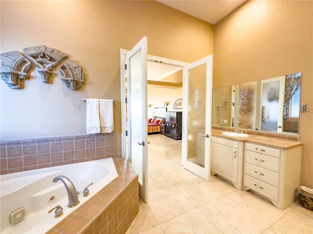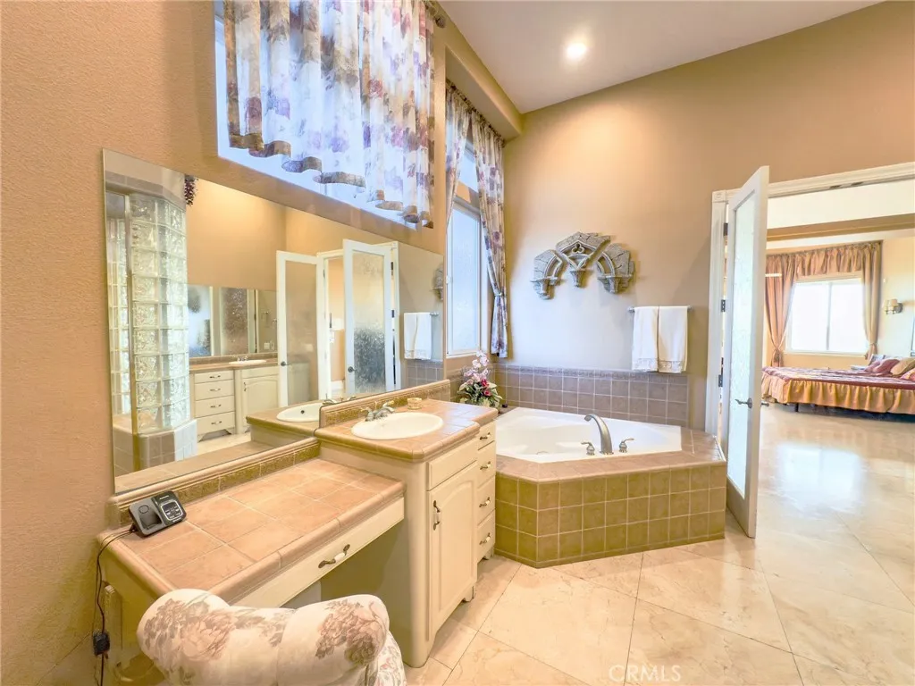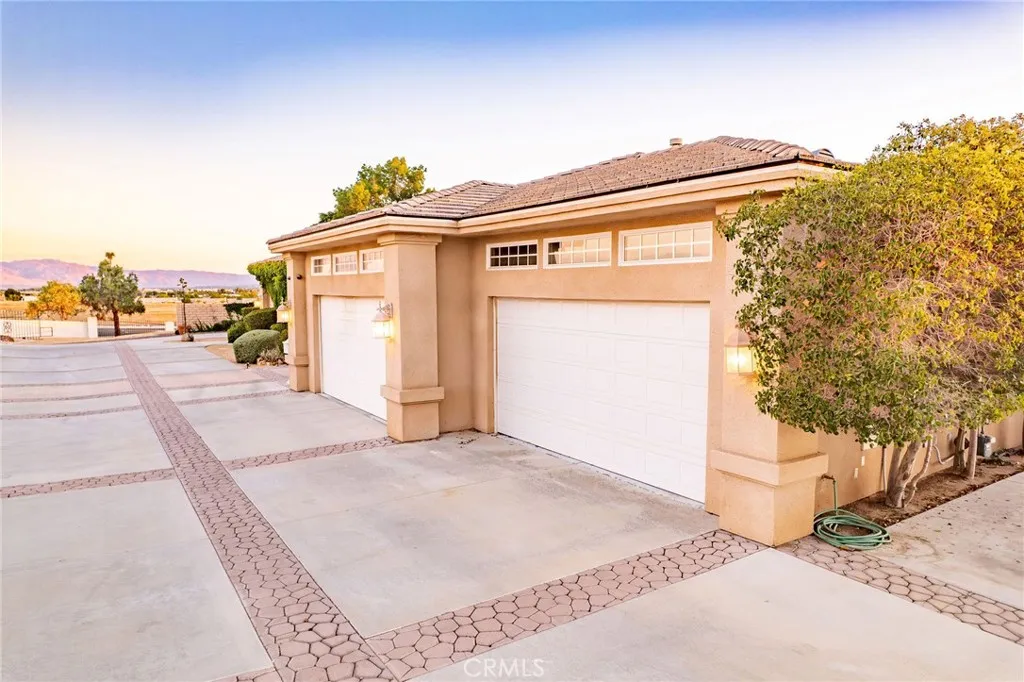 EXDQUISIT, LUXURY HOME. Perched on a premium corner lot in one of Apple Valley's most exclusive neighborhoods, this home boasts SWEEPING VIEWS OF THE MOUNTAINS AND CITY LIGHTS. Gated front courtyard, sets the tone for the elegance inside. Greeted by a Swarovski crystal chandelier, elegant stone and tile flooring, and large windows with automatic blinds. The open-concept great room combines the living area, dining space, and gourmet kitchen-perfect for entertaining. Chefs kitchen includes wrap-around granite countertops, center island with storage, high-end KitchenAid appliances including a 6-burner cooktop stove and convection/standard oven, walk-in pantry, sunny breakfast nook. The oversized laundry room is a standout, offering a shampoo sink and chair, plus ample cabinetry - a rare and luxurious bonus. Handicap-equipped bathrooms, including a walk-in shower with an adjustable built-in chair. Features TWO BONUS ROOMS, perfect to convert into extra bedrooms, or use as a home office, gym, or hobby space. The master suite is truly a private retreat with a SEPARATE SEATING AREA, romantic 3-sided fireplace, massive walk-in closet with custom shelving, private slider to the patio, dual vanities with tons of cabinet space. Outside, the backyard is a private oasis featuring a rock-garden courtyard with a tranquil waterfall. The covered patio provides generous space for seating and soaking in the sweeping mountain and city views. 4-CAR GARAGE with many built-in cabinets. RV ACCESS & PARKING. This home is loaded with upscale features too numerous to list. A true must-see for the mos