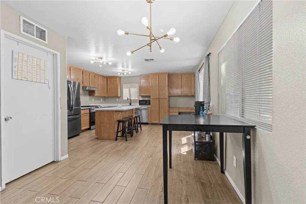 Back on the market at no fault of seller! Step into this charming 2-story residence situated within a secure community in San Jacinto! Featuring 4 bedrooms, 2.5 bathrooms, and 1,985 square feet of living area, this property is ideal for families of any size. As you enter, you'll be struck by the home's numerous enhancements, such as contemporary wood-look tile flooring, soft, neutral-colored walls, and unique custom touches. The expansive kitchen offers ample counter space and a generous island, making it perfect for cooking or hosting gatherings. The nearby dining room and living area create a welcoming atmosphere for both family events and quiet family time. Upstairs, To the right is a spacious primary bedroom equipped with walk-in closet, private bathroom, double sink and a separate walk-in shower and soaking tub. On the left side of the stairs you will be directed to a bathroom with a double sink and shower/tub combo. Down the hall will be 3 bedrooms. The the first bedroom to the left is spacious and has an ample size closet. Down the hall and second room to the left has a walk-in closet. Down the hallway on the right also has a walk-in closet. The backyard has a covered patio for private and plenty of space to bbq and host. This is a unique gated community and also offers a park, playground, bbq area and basketball court. The outdoor amenities is perfect for anyone in the family to enjoy and utilize. With its excellent location and stylish upgrades, this home is an opportunity you don't want to pass up.