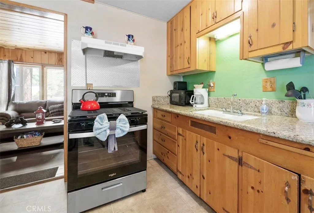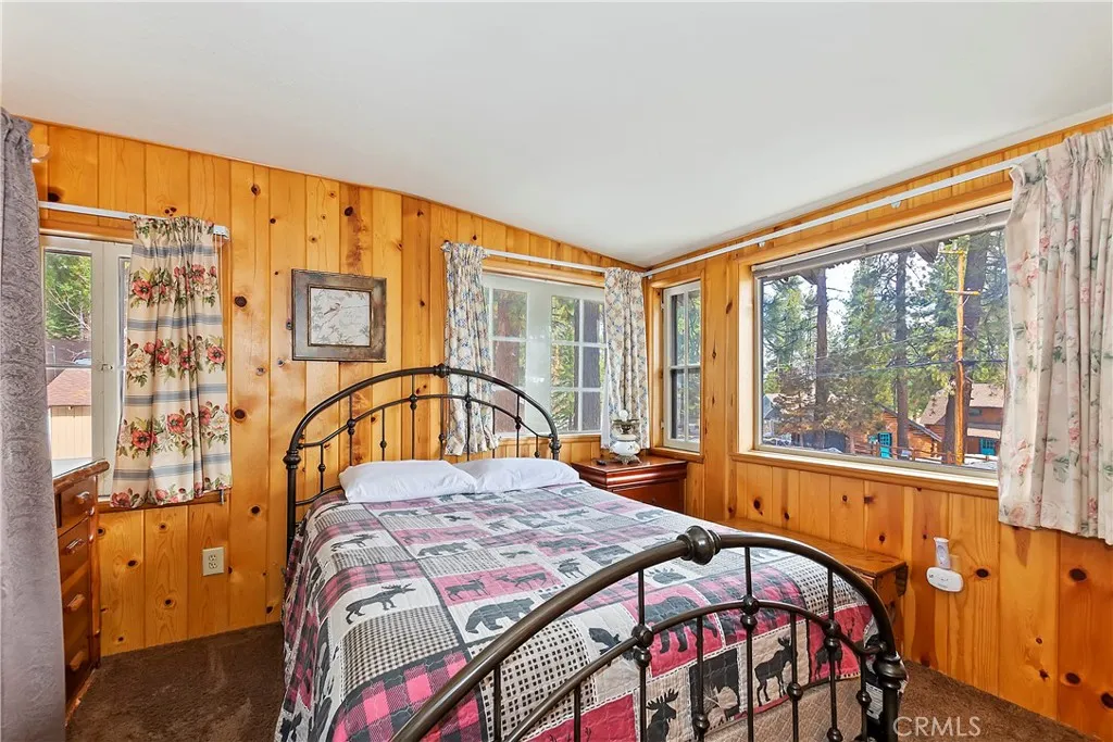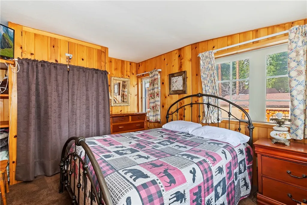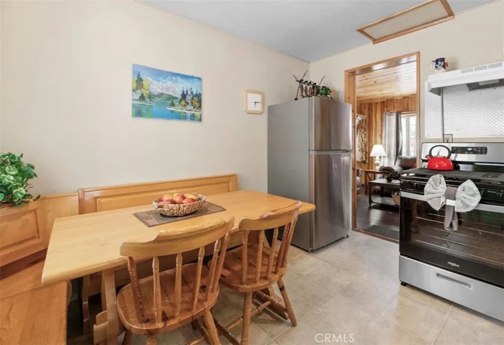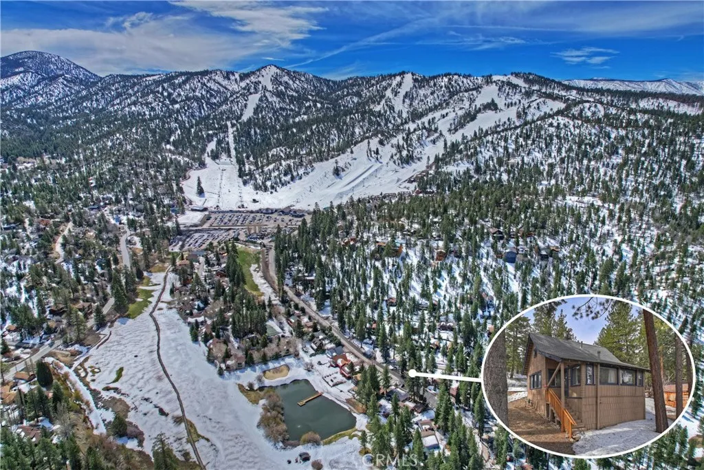 Merry Christmas! ***SELLER WILL CREDIT BUYER $10,000 AT CLOSING! *** Ideally situated within walking distance to Bear Mountain Ski Resort, the golf course, Moonridge Zoo, and numerous trail systems, this updated vintage cabin offers comfort, charm, and investment opportunity. The interior features classic knotty pine tongue-and-groove walls and ceilings, a striking native stone wood-burning fireplace, and granite kitchen countertops with a cozy dining nook. The one-bedroom layout includes a full bathroom with an antique clawfoot tub and separate shower. Well-maintained and thoughtfully upgraded, the home includes a newer roof (2017), storm windows, and an extended driveway with RV parking. The detached one-car garage may qualify for a junior ADU or studio conversion (buyer to verify), and the oversized yard presents further expansion or ADU potential. Sold fully furnished, this cabin has a proven track record as a seasonal short-term rental and is ready for immediate use or income generation. Don't miss this unique opportunity to own in the highly desirable Moonridge neighborhood.