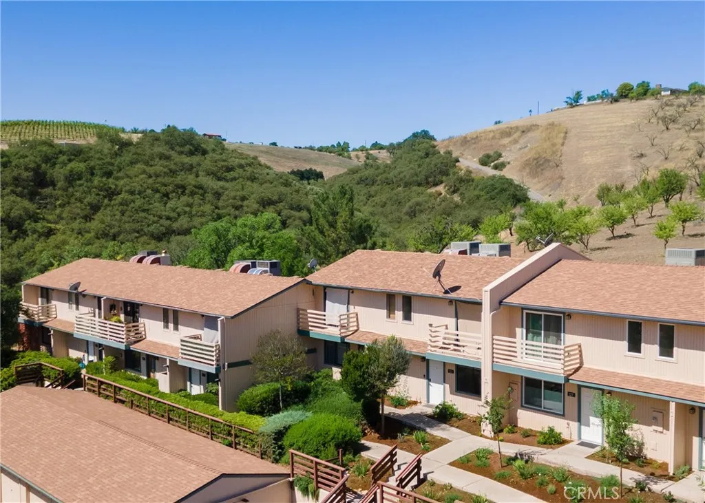 What an opportunity! This terrific condominium on the west side of Paso Robles is in a fantastic location near the south end of Olive Street. Behind the complex is an almond orchard. Talk about peaceful and quiet! There are only 12 units in the complex. There is a pine grove between the condominium complex and the apartments below, allowing for additional quiet and privacy. Each unit has its own garage plus two additional assigned spaces, great for two cars plus company! A/C was replaced in 2023, along with new carpet and fresh paint. The roof is also newer. The condo features a small back yard with tiered landscaping. The kitchen has a full-length pantry. The condo features a convenient half bath downstairs and a full bath upstairs. The bedrooms are located across the hall from one another, allowing privacy. Or use one of the rooms as an office! There is also a balcony off the front bedroom, featuring city views. What a great place to hang out for morning coffee to watch the sunrise! Make this great place your own!