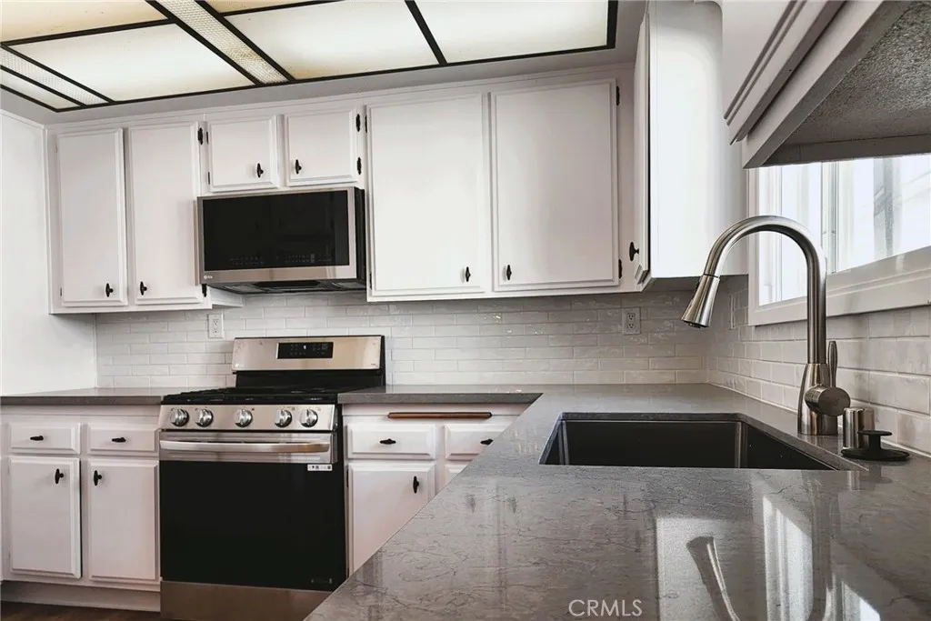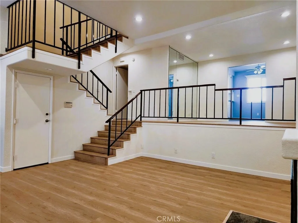 Prime, Move-in Ready Townhouse in the Coveted Mason Grove Community. This beautifully remodeled tri-level townhouse blends comfort and style in a desirable open split-level layout. Boasting 2 bedrooms, 2.5 baths, and an attached 2-car garage, this home checks every box. Step into a welcoming entry way featuring a custom built-in wood cabinet-perfect for a dry bar-that opens into a stunning living area with soaring ceiling, recessed lighting, and ceiling fan. From here, enjoy direct access to your own tranquil private patio. A short set of steps leads to the formal dining area, accented by a mirrored wall, which seamlessly flows into the sunlit eat-in kitchen. Here youll find new quartz countertops, top-of-the-line appliances, a built-in desk, andyou guessed itabundant cabinetry to meet all your storage needs. The main level also includes a renovated powder room and access to the finished double garage, complete with a storage room. Upstairs, two expansive en-suite bedrooms offer walk-in closets and private bathrooms. The primary suite features a spa-inspired bath for relaxation. Both bedrooms are outfitted with double windows and ceiling fans for comfort and quiet. Additional highlights include new waterproof wood flooring throughout and a laundry area with linen storage between the bedroom suites for added convenience. As a resident of Mason Grove, youll enjoy great amenities, including a recreation clubhouse, two sparkling pools, hot tubs, and a rejuvenating sauna. All this, plus an excellent location close to The Vineyards at Porter Ranch, CSUN, top-rated schools, Trader