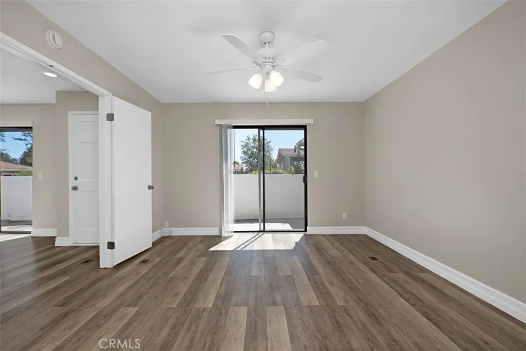 Great Opportunity in Aliso Meadows, Laguna Hills! This easy-living SINGLE LEVEL home boasts fresh paint throughout in soft, warm tones, new closet doors, new ceiling fans, and new window blinds. Perfect for first-time homebuyers, downsizers, and Investment buyers. Open floor plan includes a large primary bedroom suite with private bathroom, a sunny secondary bedroom, dining room--and laundry room. Both the living room and primary bedroom enjoy sliding glass doors opening to the patio. The recently extended patio provides plenty of space for outdoor dining. HOA pays for trash, water, and grounds maintenance. Freeway close, Toll Road Close!
