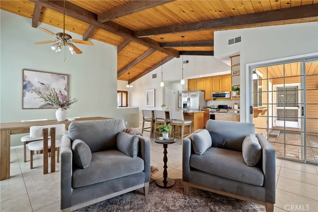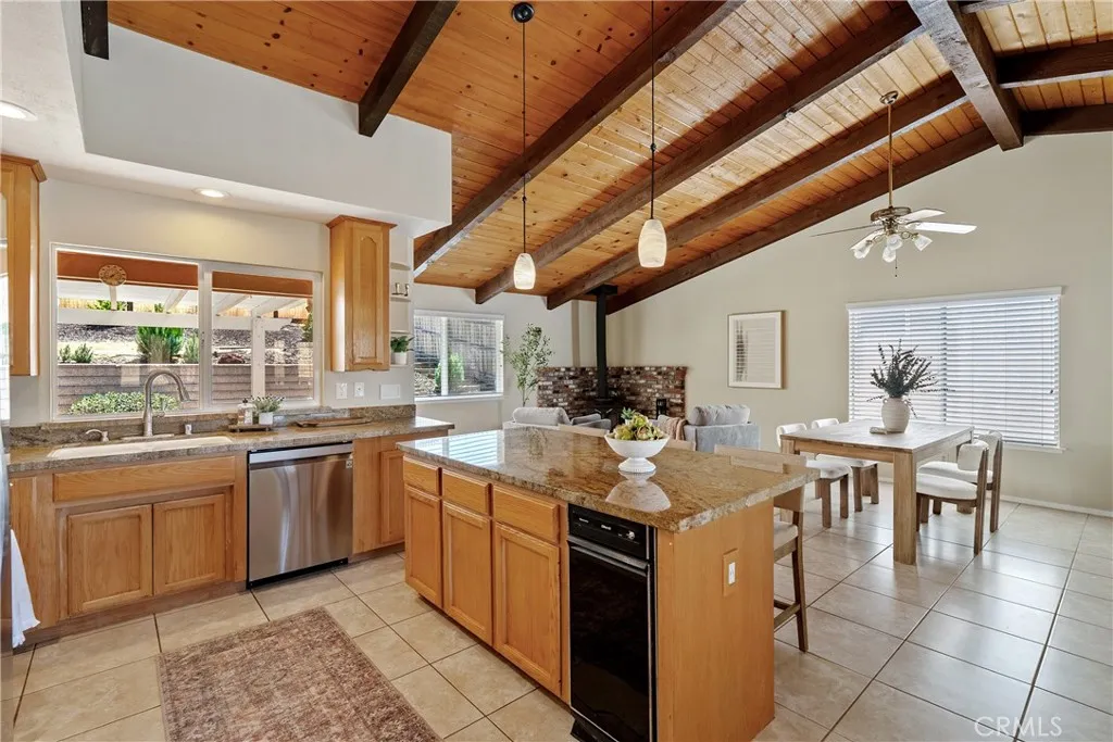 Enjoy Lake life in this three bedroom two bath home is located in a desirable neighborhood in the gated community of Heritage Ranch. Meadow and mountain views from your front porch invite you to sit outside with your morning coffee or an evening glass of wine while you watch the sunset. There are cathedral ceilings and oak beams in the step down living room and in the kitchen and family room area. The kitchen is open to the family room and dining areas and offers granite counter tops, stainless steel appliances, a breakfast bar with pendant lights, and plenty of storage. Relax by the wood burning stove in the family room area on cold winter nights. There is an indoor laundry room with additional storage and access to the back yard. You can also access the back yard from the kitchen. In addition to space for entertaining and barbecuing, the yard offers an upper level perfect for a firepit or spa and backs up to open space. The spacious primary bedroom has a large walk in closet, dual sinks in the bathroom and a french door to the yard. Down the hall are two additional bedrooms and a full bathroom. The garage has cabinet storage, pull down attic access as well as access to under house storage. Community amenities include gated entry private launch ramp, swimming pools, tennis courts, pickleball courts, recreation barn, senior center, equestrian center, riding and hiking trails, dog park, market, fitness center, and gas station. Call your realtor today!