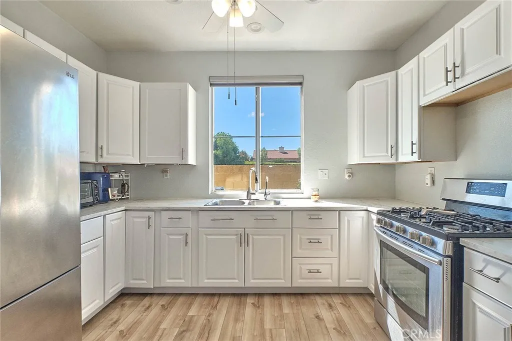 Welcome to the gated community of Oak Lane in the heart of Santa Clarita, known for its peaceful surroundings and convenient location. (1) This beautiful home offers Approx.1,800 sq ft. of open and airy living space with a bright layout. (2) Four spacious 4-bedroom, 3-bathroom floor plan. (3) Completely upgraded and remodeled throughout in 2022. (4) Low HOA of $355/month and no Mello-Roos. (5) The private backyard is the perfect space for family BBQs and outdoor enjoyment. (6) Although it's located on a main street, there is not much traffic, and as an end unit, the entire home receives plenty of natural light.