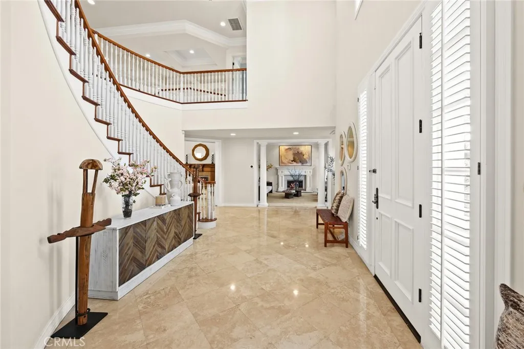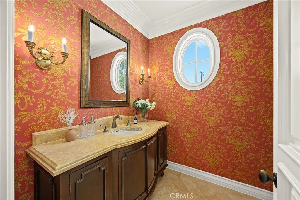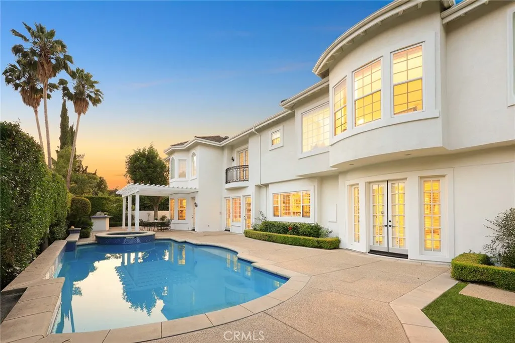 Location! Location! This magnificent Colonial-style estate is located in Pasadenas prestigious Chapman Woods neighborhood, adjacent to San Marino. Featuring 5 bedrooms and 4.5 bathrooms, it seamlessly blends timeless elegance with modern comfort. Designed by renowned architect Robert Tong and meticulously constructed by Mur-Sol, the residence sits on nearly half an acre of beautifully landscaped grounds, exuding sophistication and grandeur.A wide circular driveway leads to an impressive faade, where elegant columns and double doors create the stately presence of an estate home. Upon entering, youre greeted by a soaring 25-foot foyer adorned with French stone flooring, creating a bright and elegant sense of space. The formal living room features a modern marble fireplace and exquisite niche details, while the spacious, high-ceiling family room boasts upscale custom wood cabinetry, making it the perfect place for family gatherings and entertaining friends. The kitchen is designed in an open French style, featuring white carved cabinetry and a sophisticated stone center island surrounded by breakfast and dining areas that radiate both luxury and warmth.The first floor includes a versatile office and a separate guest suite. Upstairs, the well-planned layout offers two additional suites and two spacious bedrooms. The romantic and stylish primary suite includes an expansive walk-in dressing room and offers delightful views of the backyard, where you can enjoy the sights and sounds of lush gardens and the sparkling pool.The meticulously designed backyard is an entertainers paradis