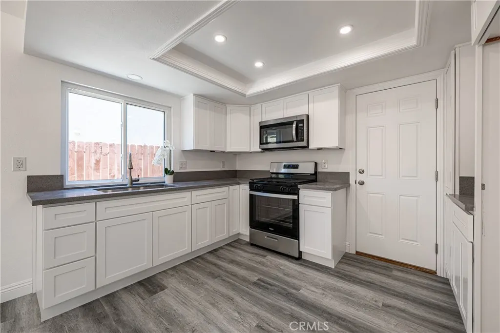 BEAUTIFULLY REMODELED...MOUNTAIN VIEWS...GREAT SOUTHRIDGE LOCATION. Step into this beautifully renovated, cozy home that perfectly blends modern style with classic charm. This detached single-family home has been thoughtfully updated with modern finishes while preserving its classic appeal, making it a perfect choice for today's discerning buyer. Upon entering, you are greeted by an open-concept living area with abundant natural light, highlighting the sleek new flooring and neutral color palette throughout. There are 4 bedrooms, 2.5 bathrooms, with 1,403SF on a 4,000SF lot, with newer dual-pane windows. Every room has been updated with new flooring, fresh paint inside and out, upgraded baseboards, and recessed lighting. The gourmet kitchen boasts new cabinetry, quartz countertops, stainless steel appliances, new sink and faucets, making it an ideal space for cooking and entertaining. The dining area is adjacent to the kitchen and living room with fireplace, and a French door that leads out to your private backyard and covered patio. Upstairs you will find the spacious primary bedroom with 3 additional bedrooms (one with a bench seat) with new flooring and tons of natural light. The primary bathroom vanity has dual sinks and completely remodeled with new vanity, quartz counters, lighting, sinks, faucets, new flooring, new toilet, and tub. The hallway bathroom also has been completely remodeled. Outside you will enjoy your private, low-maintenance backyard with a covered patio - perfect space for relaxing or entertaining. No HOA in this community. Close to schools, shopping,