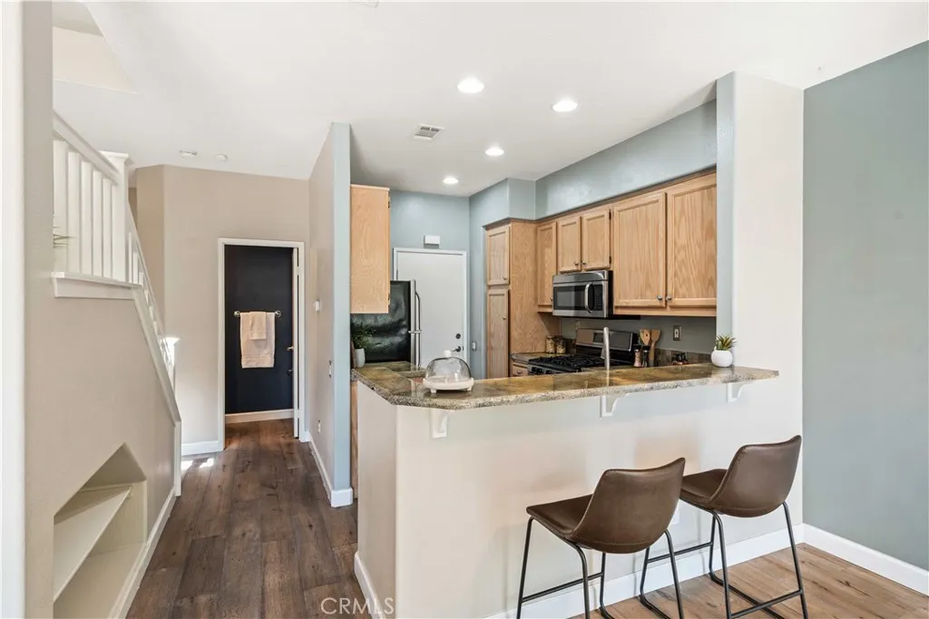 FHA and VA financing allowed, this HOA community is warrantable! Unwind and enjoy your summer nights sitting on the patio lounge chairs while gazing into the Sunset. The orientation of this home has a west-facing backyard and east-facing front door allowing natural lighting all around, presenting the property light and bright. In the heart of the City of Santa Clarita and the highly desired area of Valencia Northbridge in the Montana Townhomes! The location of the home is great being near the guest-parking spaces, and has no direct backyard neighbor. There is a 2 car garage attached with direct access to the Kitchen. Through the Kitchen youll notice upgraded cabinetry, countertops, and stainless steel appliances. Throughout the home there are Laminate planks, tile in the bathroom, and no carpet whatsoever. Each bedroom has its own private full bathroom inside, downstairs features a guest bathroom for visitors. The HOA amenities include Roof coverage for the property, maintenance for the common grounds such as the greenbelt and the HOA pool and spa. The home is nearby award-winning schools, the Bridgeport market place, 3 City parks, and the famous Santa Clarita Paseo walking trails. No Mello Roos tax bonds.