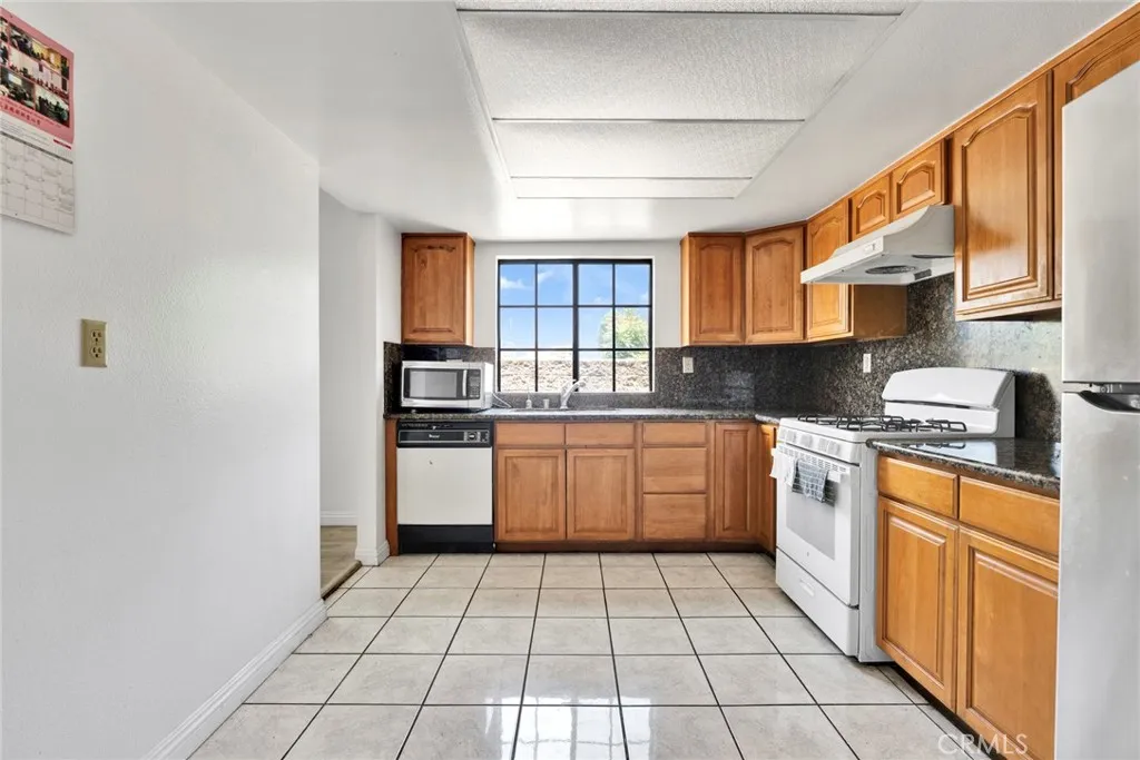 Move-In Ready! This beautiful two-story, single-family style condominium is perfectly located in a highly convenient area with low HOA fees. The home features a durable tile roof, 3 spacious bedrooms, and 2.5 bathrooms. The expansive living room includes a double-sided fireplace, and the entire home boasts wood laminate flooring. The kitchen offers quality cabinetry, granite countertops, a built-in stove, a dishwasher, and tile flooring. All bathrooms also feature tile flooring. The home is exceptionally bright with an open and spacious floor plan, thanks to the abundance of windows and natural light. Additional highlights include an attached 2-car garage with direct access to the kitchen, automatic garage door, washer and dryer hookups, and water heater in the garage. The home is in immaculate, move-in condition with central air and heating. Step outside to a private backyard, easily accessible through the dining room's double doors, perfect for sunny outdoor activities and low-maintenance with concrete flooring. *** Dont miss out on this fantastic opportunity to own your dream home! ***