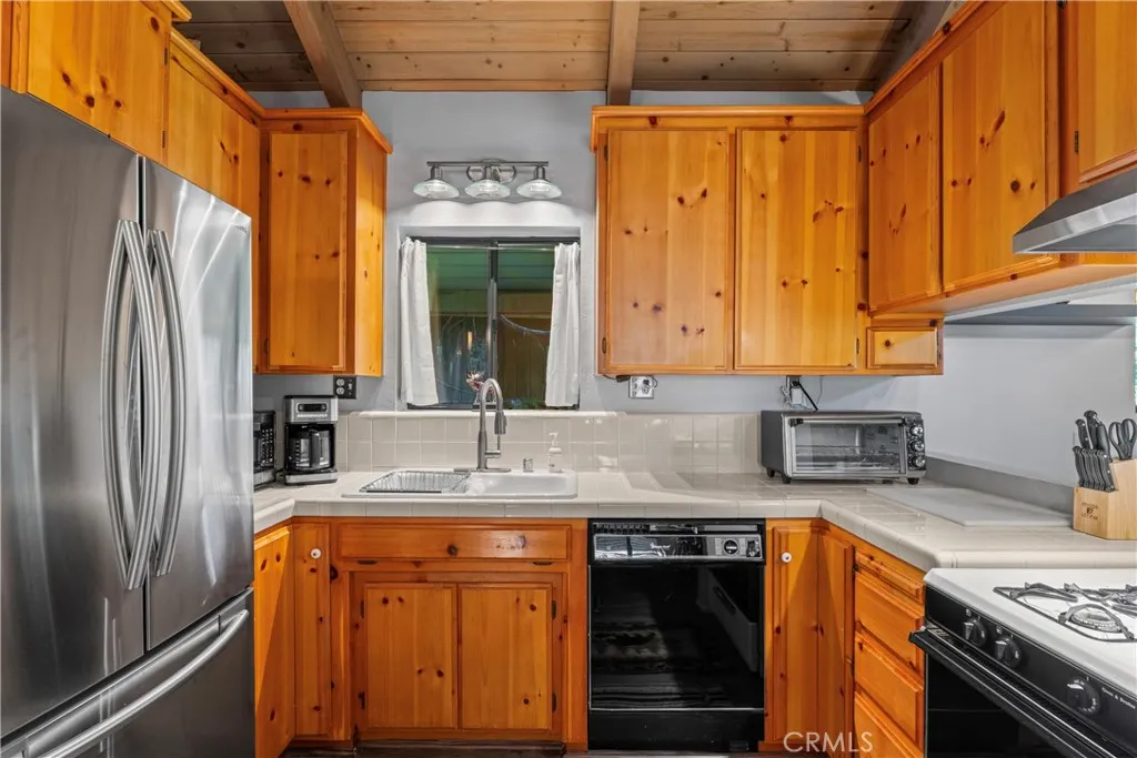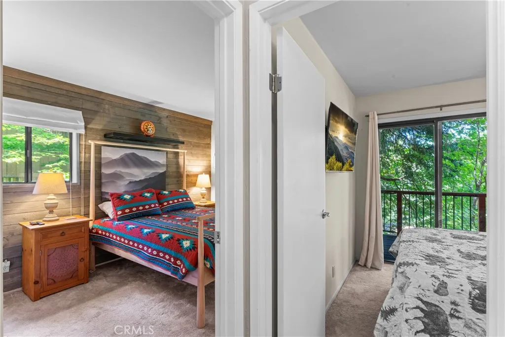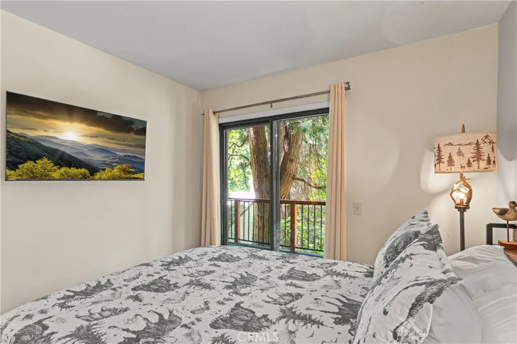 Welcome to the Three Bears Cabin a storybook mountain retreat in Lake Arrowhead Villas. Tucked beneath a canopy of soaring redwoods, this recently renovated and fully furnished home blends rustic charm with modern design in a way that feels both timeless and fresh. With three bedrooms and two full baths, the cabin is offered turnkey and move-in readyperfect as a private escape, vacation rental, or full-time residence. The open-concept living space is centered around a dramatic floor-to-ceiling stone fireplace, with soaring wood-beamed ceilings and expansive prow-style windows that flood the interior with natural light. The kitchen has been thoughtfully updated with quartz counters, stainless appliances, and a breakfast bar, and comes fully equipped for immediate enjoyment. The home comfortably sleeps up to nine guests, featuring two queen-size bedrooms, a bunk room with trundle, and a queen-size fold-out sofa in the living room. Large-screen TVs are located in each bedroom and above the fireplace, and a dedicated work space with computer desk and tech equipment is also included. Outside, full-length decks on both levels invite you to unwind among the trees. A built-in fire pit, large BBQ, and newly added covered steam room create an ideal setting for year-round relaxation and entertaining. All appliances, electronics, and furnishings are included, making this a truly seamless opportunity for any buyer. Located in the Lake Arrowhead Villas with easy commuter access and just a short drive to Lake Arrowhead Village, this peaceful yet convenient setting offers the best of moun