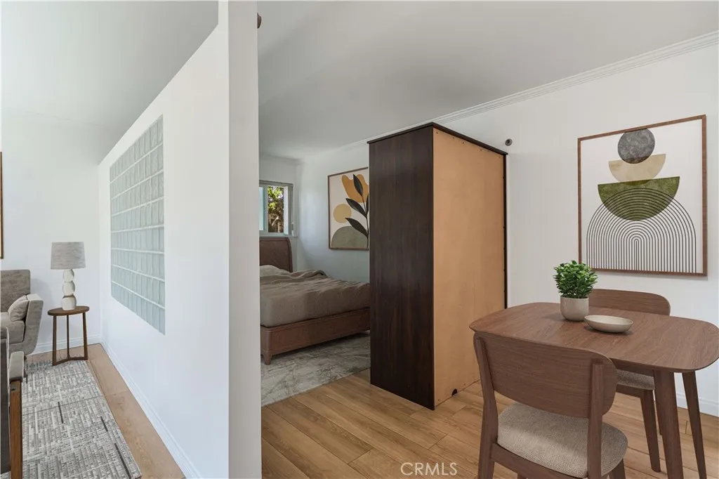 Tucked away in one of the most desirable pockets of Studio City, this well-maintained studio condominium offers an ideal blend of privacy, smart design, and walkable convenienceall in a space that feels larger than it appears on paper. Thoughtfully configured with a partitioned layout, the sleeping area is subtly separated from the main living space, giving the home the feel of a true one-bedroom without compromising flow or function. Natural light pours in through multiple windows and overhead skylights, creating a bright, airy atmosphere throughout the day. The unit also offers excellent storage, including multiple closets and dedicated storage areas rarely found in studio living. Set toward the back of the complex, the condo enjoys a uniquely quiet and private settingshielded from street noise and just steps from community amenities. Enjoy quick access to the gated pool and heated spa, as well as several conveniently located laundry facilities just around the corner from your door. This gated and secure community is beautifully landscaped and well maintained, with plenty of guest parking. Situated in the heart of Studio City, just moments from top restaurants, nightlife, grocery stores, and boutique shoppingincluding Trader Joes, Erewhon, and some of LAs best sushi. Plus, with close access to the 101, 134, and 170 freeways, getting anywhere in the city is simple.