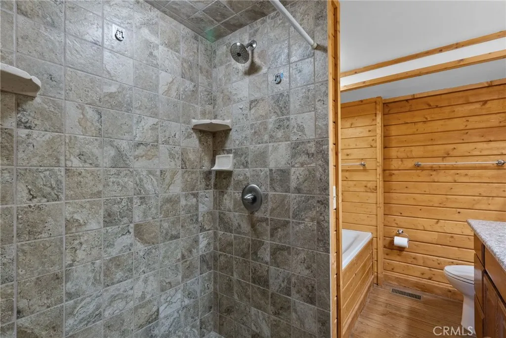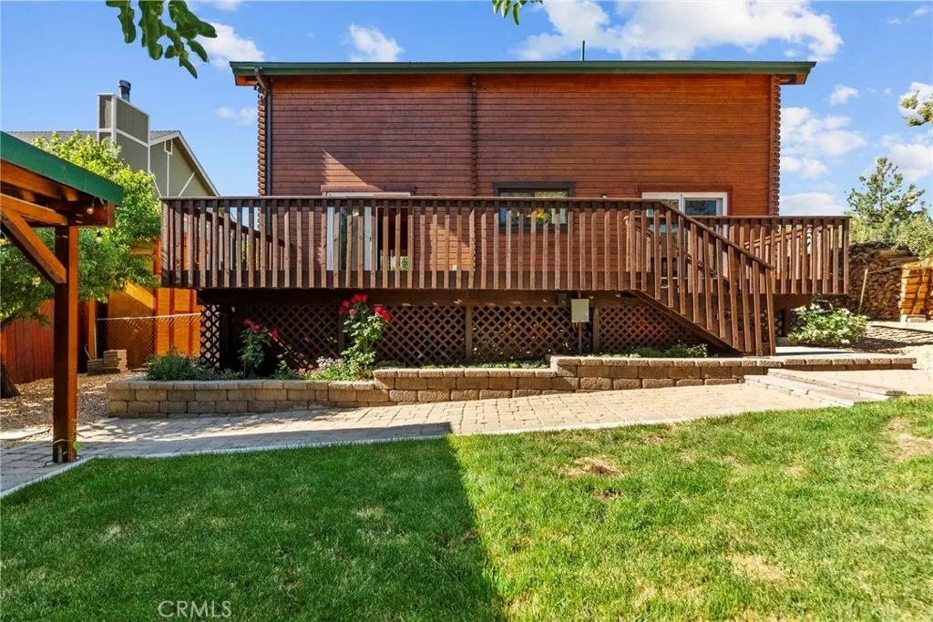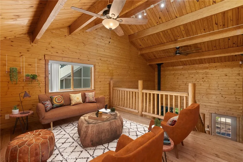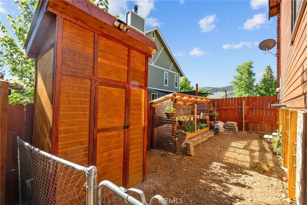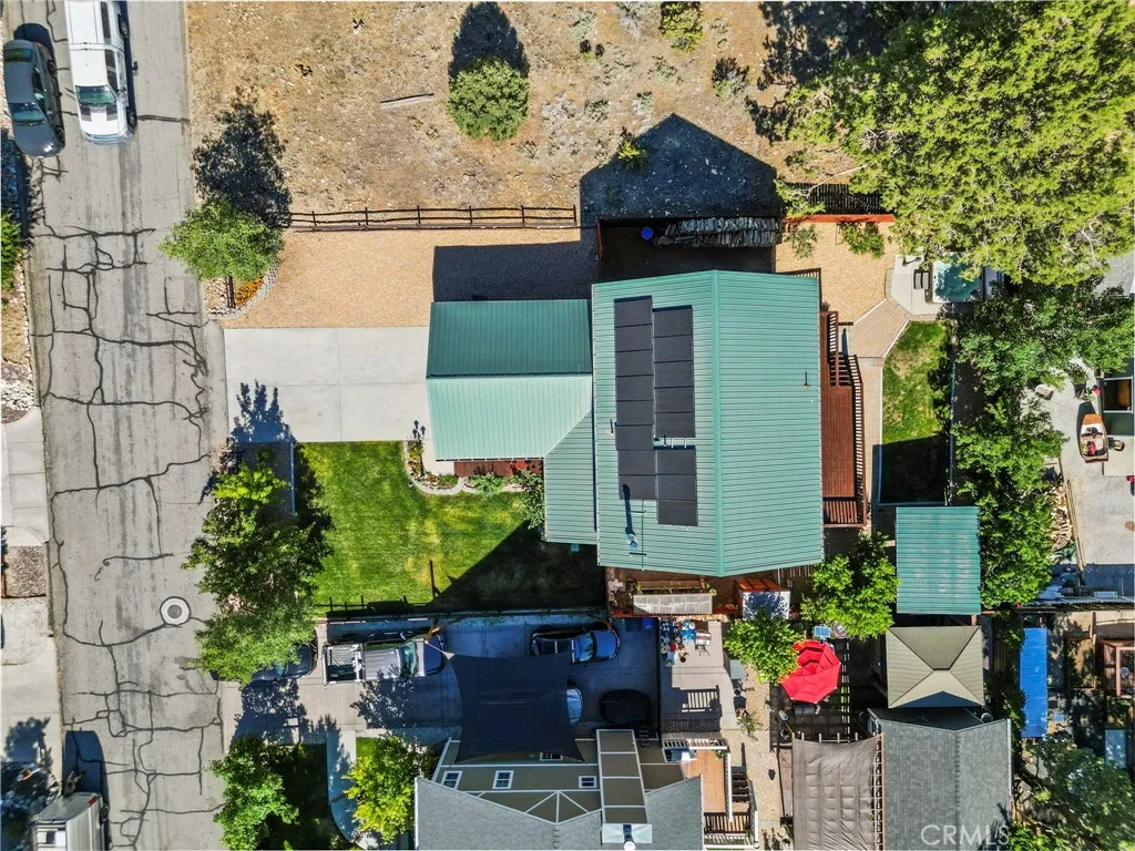 Escape the city bustle to your Big Bear sanctuary! This thoughtfully updated 3-bed, 2-bath mountain home is ideal for remote work, offering a seamless blend of modern comfort & natural beauty. Inside, discover refinished floors, custom cabinetry, granite countertops, and a spacious living area with a cozy wood-burning stove. An open loft provides flexible space for an office or relaxation. Experience true peace of mind with modern upgrades throughout: owned solar panels for low energy costs, an EV charging station, a robust security alarm system with cameras, and a durable metal roof. The fully fenced, meticulously landscaped backyard is your private oasis. Enjoy enchanting up tree lighting, abundant fruit trees (apple, cherry, peach, pear), a gas firepit, and a private hot tub for ultimate relaxation. A chicken coop or extra storage under deck adds versatility. Located in a sought-after Big Bear neighborhood, near schools, and known for its welcoming community, this home combines smart features and beautiful outdoor spacesready for mountain living in every season.
