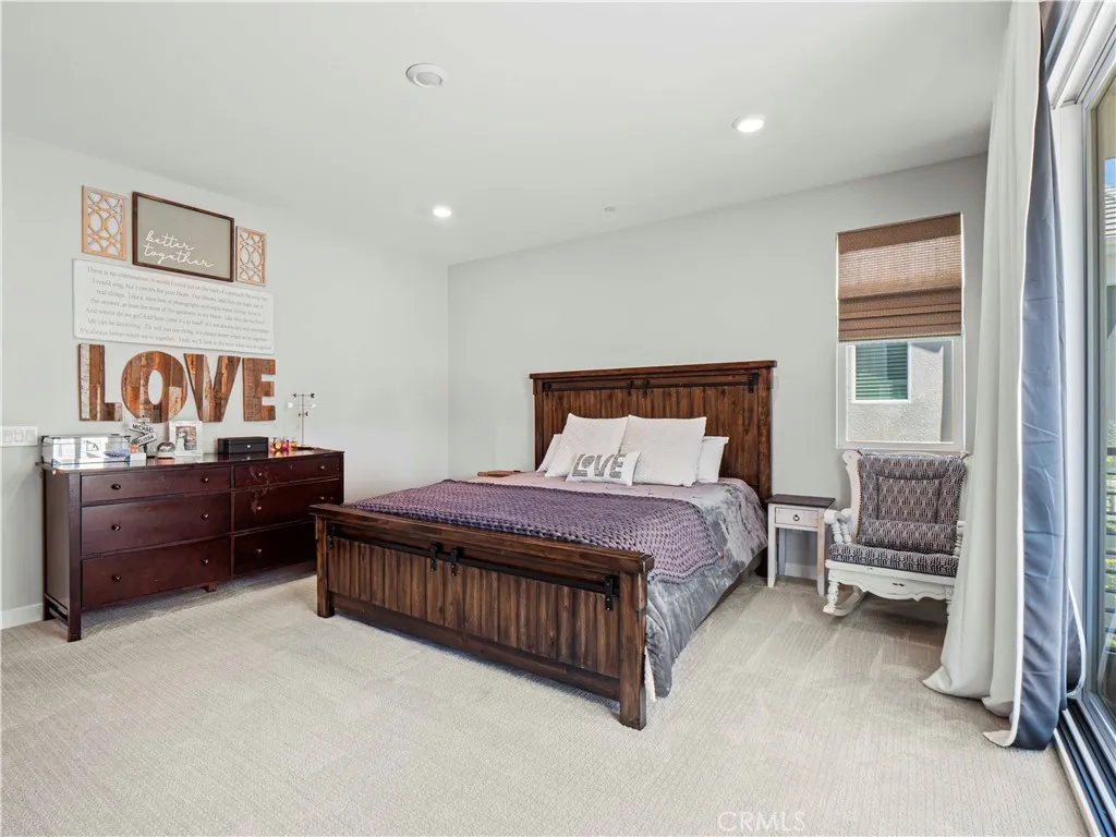 Experience the beauty of this nearly new Valencia Five Point home with 3 Beds, 2.5 Baths, complete with a spacious loft could make a 4th bed, solar, dual yards and 2 car garage. Designer touches throughout the residence creates an inviting ambiance, highlighted by a beautifully appointed kitchen and dining area featuring a shiplap wall design. The chef's kitchen boasts a glass tile backsplash and top-of-the-line stainless steel GE Monogram appliances, complemented by a custom center island with shiplap detailing and a convenient walk-in pantry. The living room is highlighted by a custom batten board wall, while the dining area features a large sliding door that opens to a meticulously manicured yard, adorned with a stylish light fixture. The bright and airy loft serves as a perfect retreat, while the primary suite offers a private balcony and a luxurious ensuite bathroom, complete with a soaking tub, a glass-enclosed walk-in shower, and a generous walk-in closet. Two additional spacious bedrooms share a full bathroom with dual sinks, and the upper level is completed by a well-appointed laundry room. Luxury vinyl plank flooring and upgraded window coverings add to the home's appeal, while solar panels enhance its energy efficiency. The dual fully landscaped yards feature a fully covered patio with a ceiling fan, perfect for outdoor entertaining. Located just minutes from the 5 Freeway, Highway 126, Six Flags Magic Mountain theme park, and all Valencia has to offer. Residents enjoy access to a weekly farmers market, spectacular resort-style pools with cabanas, gas barbecues,