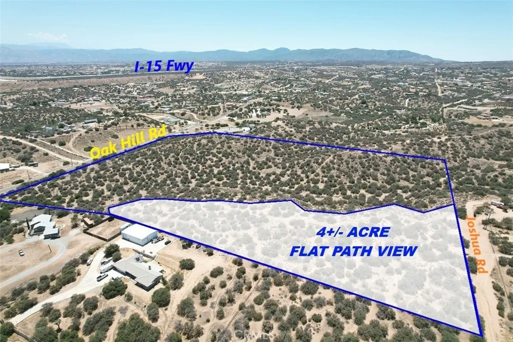LOCATION, LOCATION, LOCATION!!! 25 ACRE PRIME LAND in Oak Hills, California, with water, power, and gas on the street. Nestled between paved Oak Hill Rd with 830ft frontage and Joshua Road 660+/-ft frontage, just a short 3-mile drive to the I-15 Fwy North/South Interchange at Ranchero Rd, and a short drive to all the amenities in all the High Desert. This property can be subdivided into 10-2.5 acre or 5-5 acre buildable lots for a multi-unit development, or proceed with your plans and build out your exclusive dream castle at The Upper 4+/- acre flat Deck at the northwest corner of this lot for a large Ranch type setting with rolling hills, and breath taking views of the mountains which makes it one of the best building paths in the area, and private space. Custom Homes surround this location, providing the perfect balance of privacy and community, just minutes away from the mall, grocery stores, other major retail stores, and Schools. Don't miss out on making this your dream Home or project.