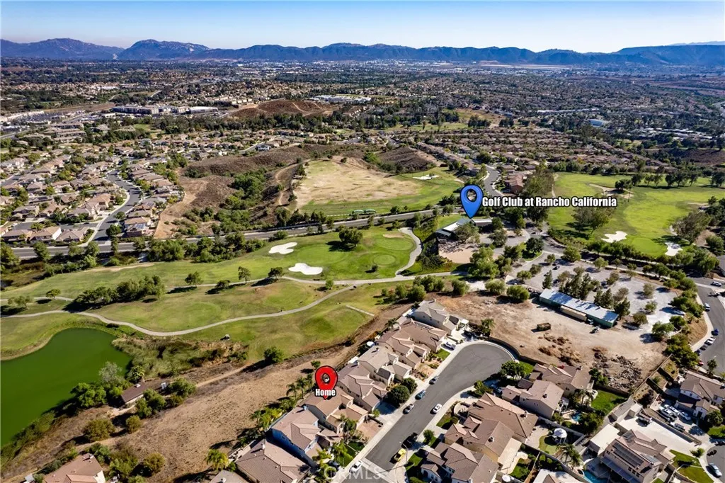 Perfectly nestled in "The Greens" community on the Golf Course at Rancho California, this turnkey 2720 sf, 4 bedroom, 3 full bath exclusive hideaway exudes peaceful sanctuary vibes while overlooking the 10th lakeside fairway oasis and tee, and 9th fairway and green. Breathtaking panoramic sunrise and sunset views stretching all the way to sky blue hills cascading across the horizon present that rarest epitome of "serenity" living right in the heart of the Murrieta Temecula corridor. Open concept floor plan. Recently painted inside and out. New privacy vinyl fencing. Outdoor front courtyard. Low maintenance landscaping. High ceilings and recessed lighting. Plantation shutters. Updated bathrooms. Granite kitchen counters. Large island with sink. Gas stove. Double ovens. Gas fireplace and surround sound speakers in family room. Downstairs full bath and bonus room which can be used as an office, gym, or 5th bedroom. Loft upstairs can be used as a work or study area. Master ensuite includes a spacious private deck, walk-in closet, dual sinks, separate tub and shower. Ceiling fans and new carpet throughout. Dual zone heating and air conditioning. Laundry room on main floor. Covered backyard patio. Three car garage. Golf course, mountain and city views. No rear neighbors. NO HOA. Low tax rate. Located on a quiet cul-de-sac within minutes to Downtown Murrieta, Old Town Temecula, wineries, breweries, shopping centers, and easy freeway access to Southern California hotspots, such as San Diego, Orange County, and Los Angeles.